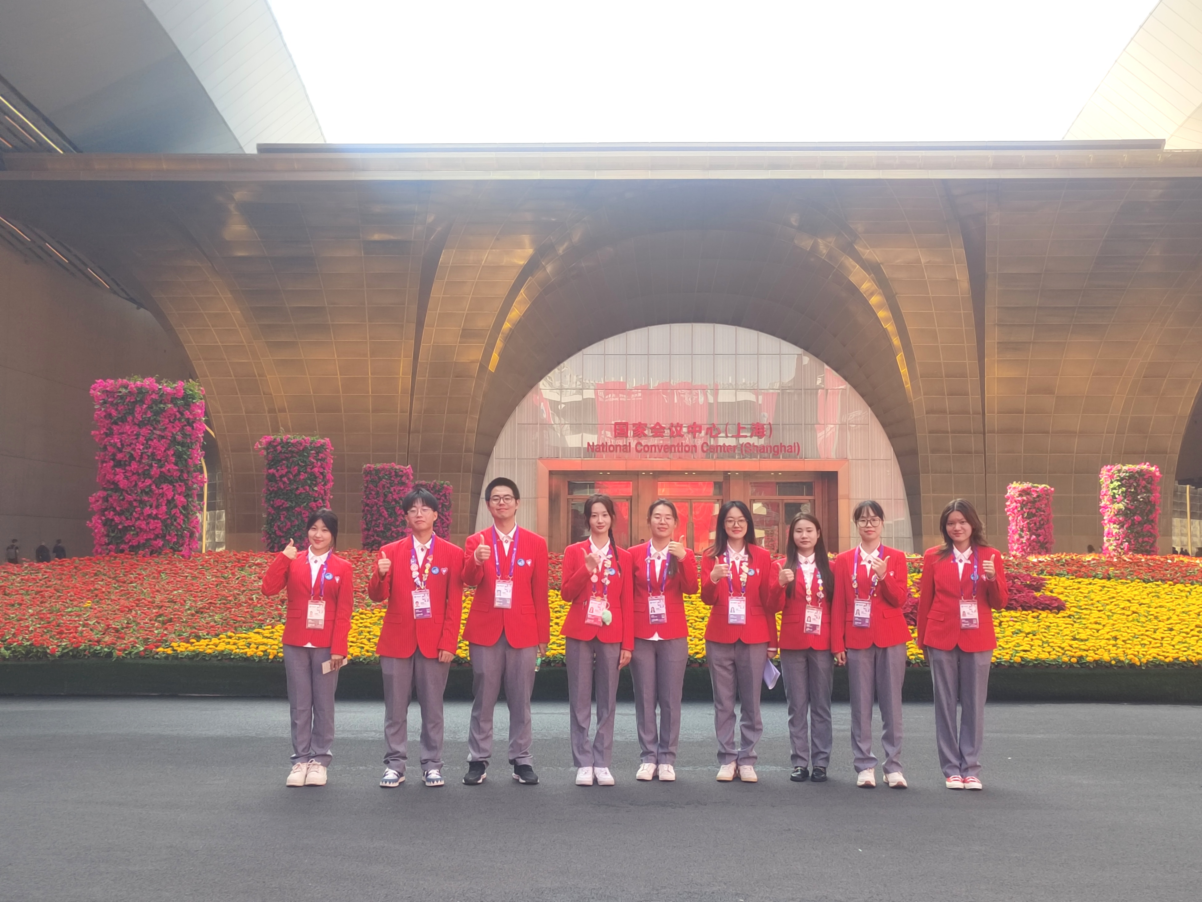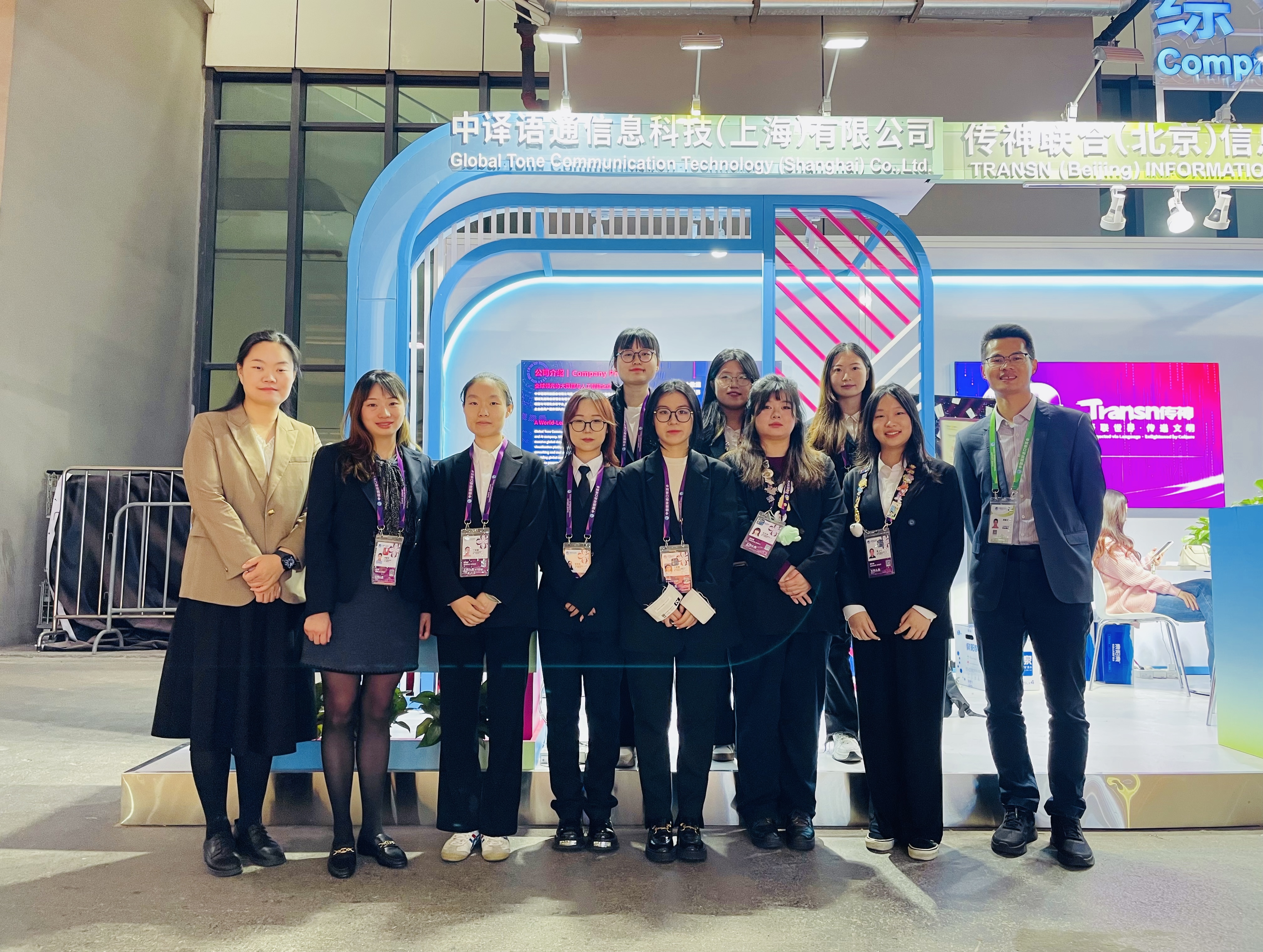 本届中国国际进口博览会,学院高度重视,选派20名志愿者服务于进博会,其中10名同学经校团委选拔服务于进博会新闻中心和观展团岗位,8名英语专业和2名德语专业的学生服务于校企合作单位中译语通信息科技有限公司,他们充分发挥专业特长,展现青春作为、彰显青春风采。近年来,学院积极发挥校企协同育人,自2019年第二届进博会起,累计为中译语通信息科技有限公司选派进博会志愿者百余名,通过进博会场景实践锻炼,赋能学生专业水平提升。