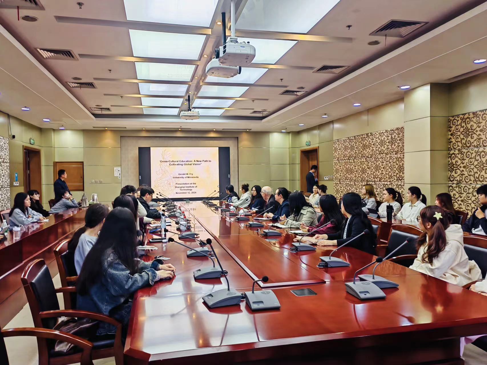 为进一步拓宽师生的国际视野,深化对跨文化教育的理解,11月12日下午,明尼苏达大学Gerald W. Fry教授受学校邀请,带来一场“跨文化教育:培养全球视野的新路径”为主题的讲座。讲座得到校党委副书记、副校长王瑛的大力支持,由国际交流处倾力指导,外国语学院师生共同参与。讲座由外国语学院科研主管叶湘主持,国际交流处副处长马浙娅,老挝留学生代表以及外国语学院师生代表50余人参加。