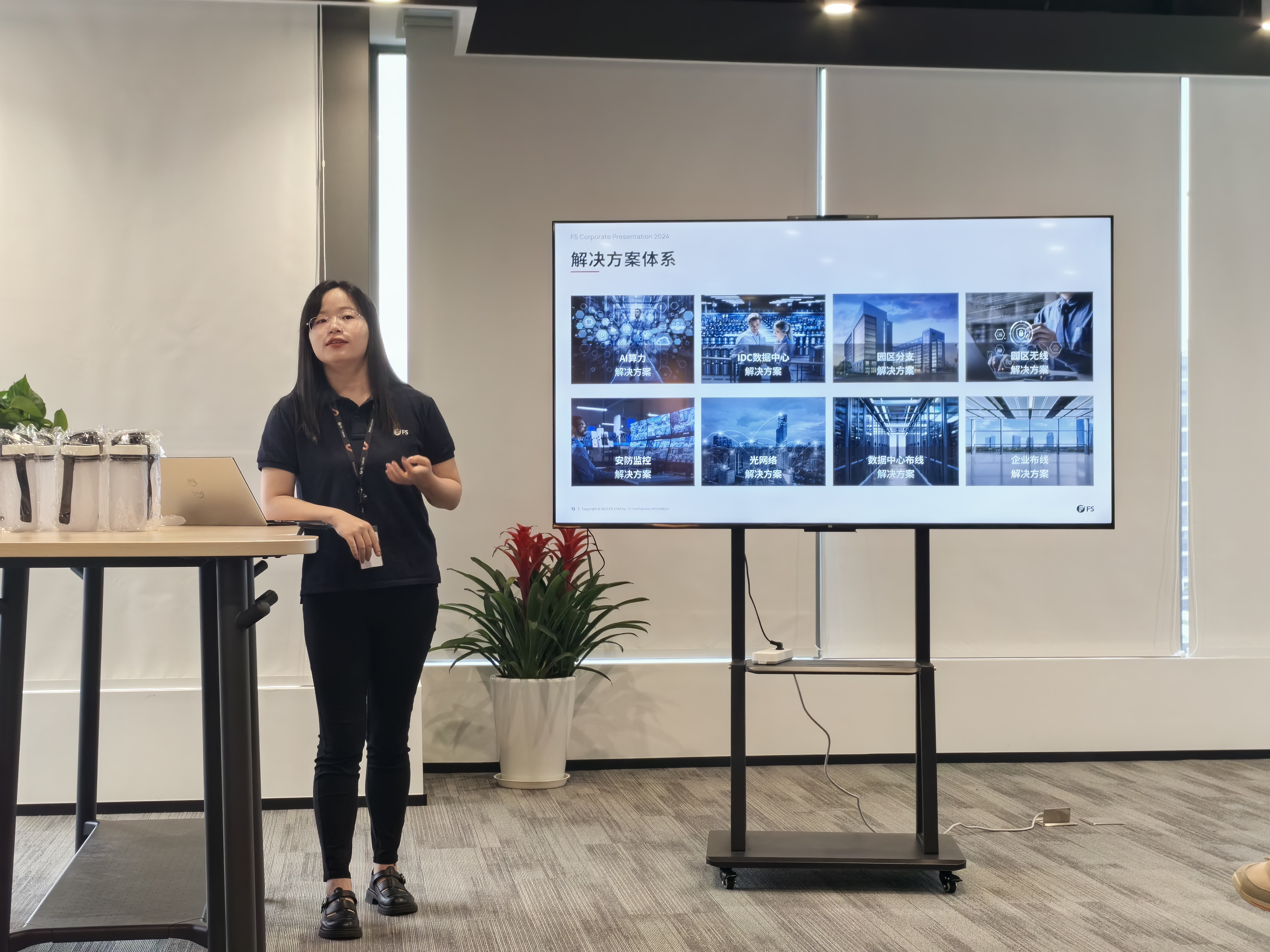 飞速创新技术股份有限公司全球销售部高级HRBP经理赵义双为师生介绍了公司的基本情况、公司业务发展、人才招聘需求以及人才职业培养规划等情况,并为同学们分享了求职就业的相关技巧。德语系22届优秀校友谢欣洁和飞速员工程艳丽分享了在飞速的成长与收获,表示非常期待和欢迎更多学弟学妹的加入飞速。全体师生观看了飞速公司的宣传片,参观了飞速公司的工作环境,在参观过程中,师生们对飞速企业的解决方案体系表现出浓厚的兴趣。从AI算力、IDC数据中心到园区分支、园区无线、安防监控以及光网络,飞速提供了一系列综合解决方案,展现了其在不同应用场景下的专业性和服务能力。通过此次职业体验实践活动,大家对行业发展及企业前景有了最直接、最切身的体会,部分同学表示了对前往飞速创新技术股份有限公司实习的浓厚兴趣,并投递了实习简历。