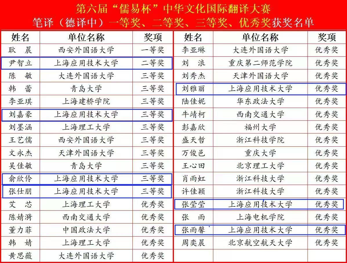 近日,在全国翻译专业学位研究生教育指导委员会的指导下,全球230+家校企单位共同举办的第六届“儒易杯”中华文化国际翻译大赛近日已完成评阅工作。德语系的学子们在徐旸老师的精心指导下,于第六届“儒易杯”中华文化国际翻译大赛中大放异彩,摘得笔译(德译中)七项大奖!