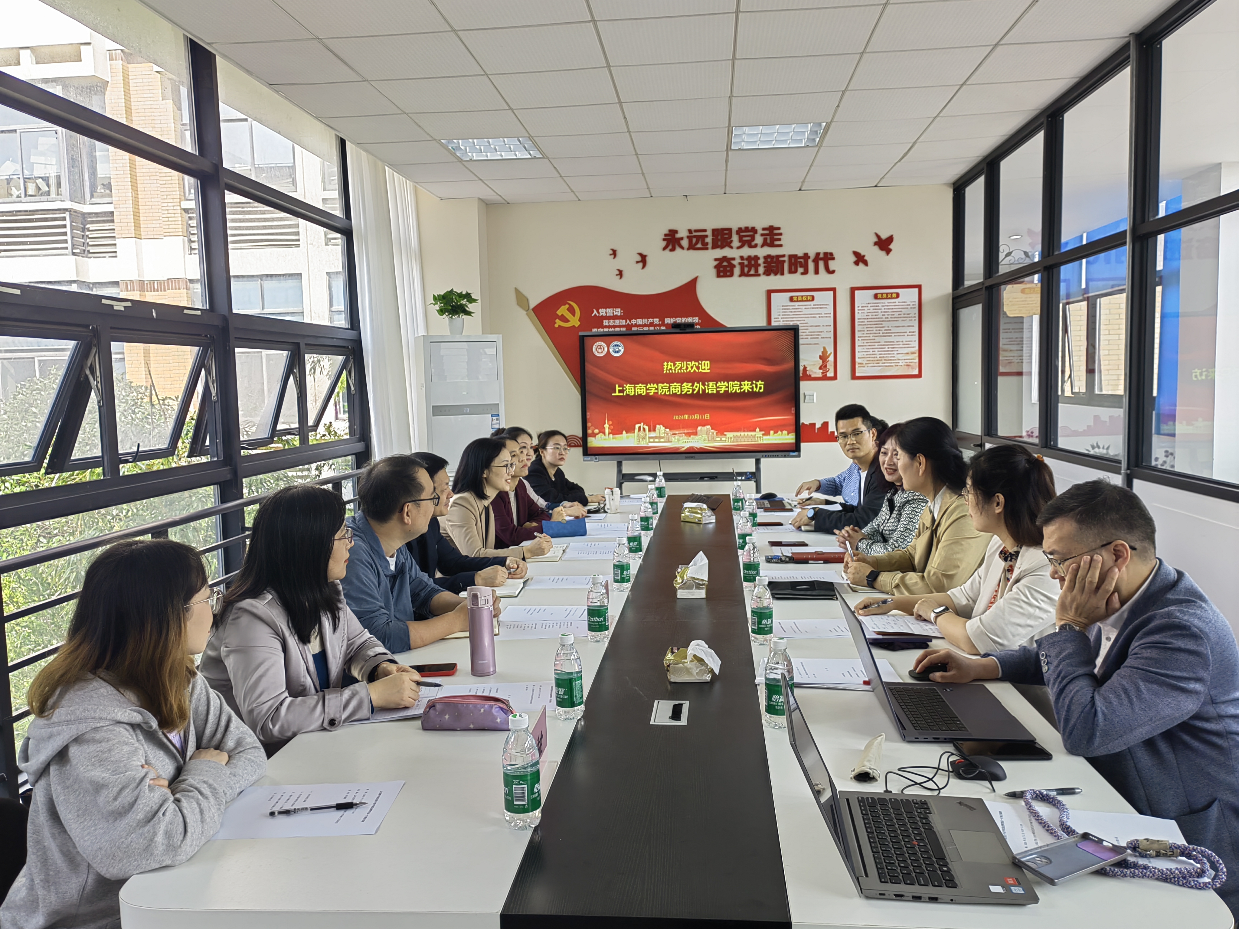 上海商学院商务外语学院院长段俊晖对我院的热情接待表示了感谢,他表示两个学院同为应用技术类高校的外语学院,我院的硕士点建设思路清晰,有很多值得借鉴的经验。在互动交流环节,双方围绕围绕硕士学位点筹建、课程建设与规划、产教融合等内容展开了深入的研讨,对未来双方在学科建设、课程开发、人才培养、党建联建、学生工作等方面的合作前景和机制安排进行了务实的探讨。