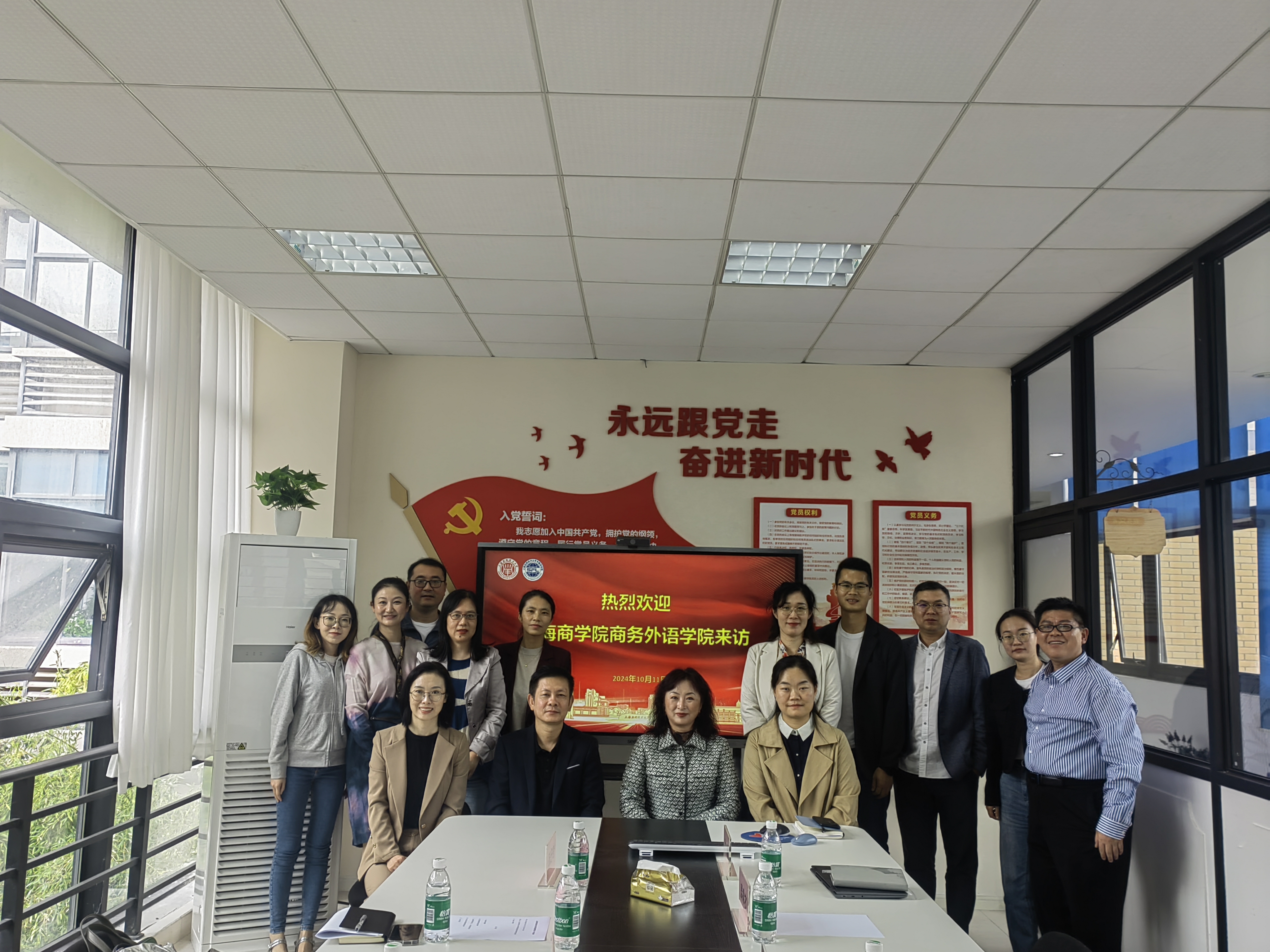 2024年10月11日,上海商学院商务外语学院院长段俊晖、党总支书记余绘平一行8人来我院就人才培养、硕士学位点筹建进行走访调研,我院院长潘智丹、党总支书记杨雪及党政领导班子和英语系相关负责人等出席调研座谈会,座谈会由学院党总支副书记、副院长周雄才主持。