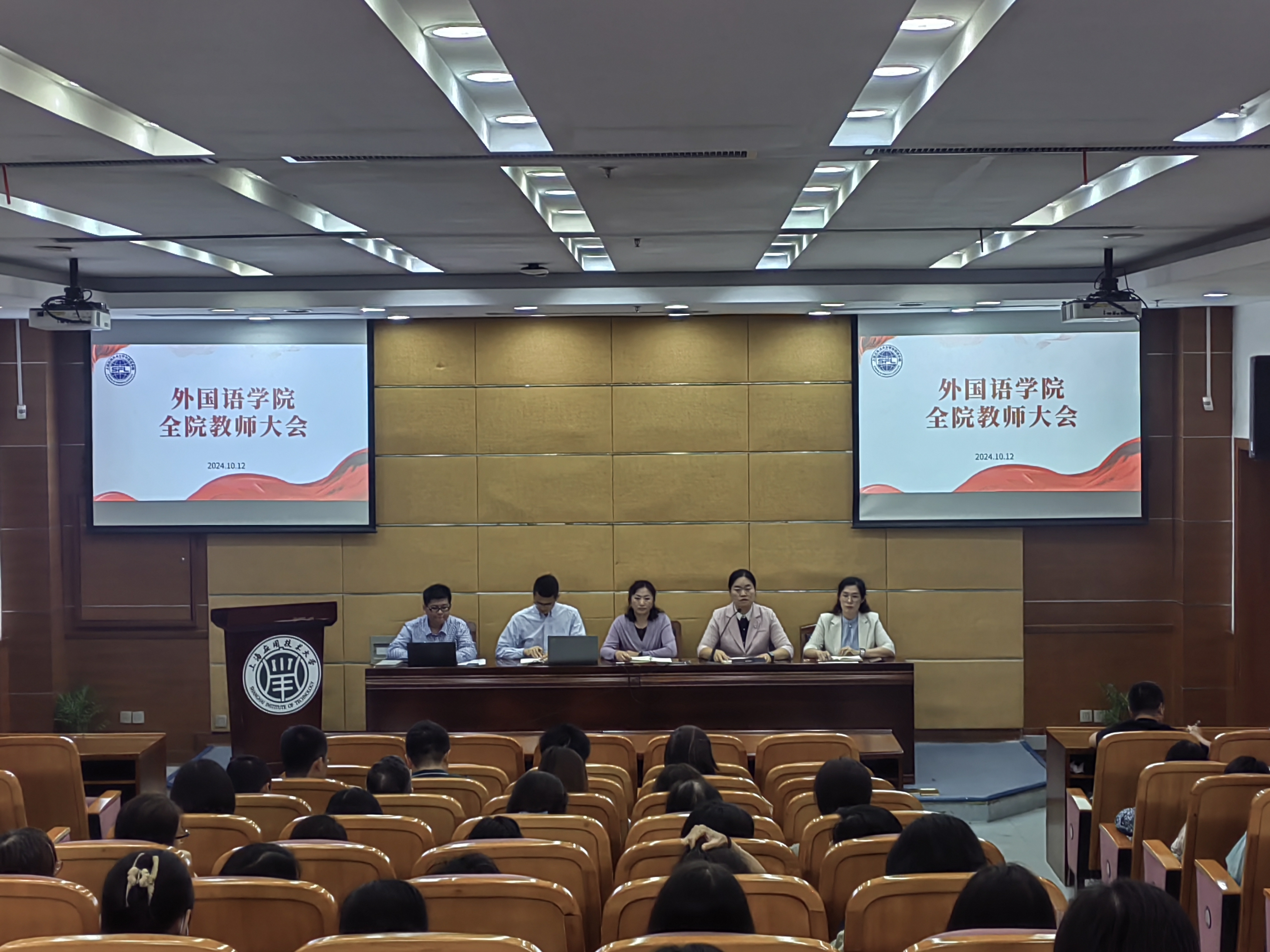 为进一步做好本科教育教学审核评估冲刺阶段各项工作,按照学校党委有关要求,10月12日下午,外国语学院再次召开全院大会,动员全院教职工以高度的思想重视、严谨认真的态度和最佳的精神风貌投入迎评工作中,按照学校服从安排、快速反应、高质量配合完成的要求,扎实推进学校和学院本科教育教学评估工作的顺利开展。会议由党总支书记杨雪主持,学院领导班子及全体教职工参加会议。