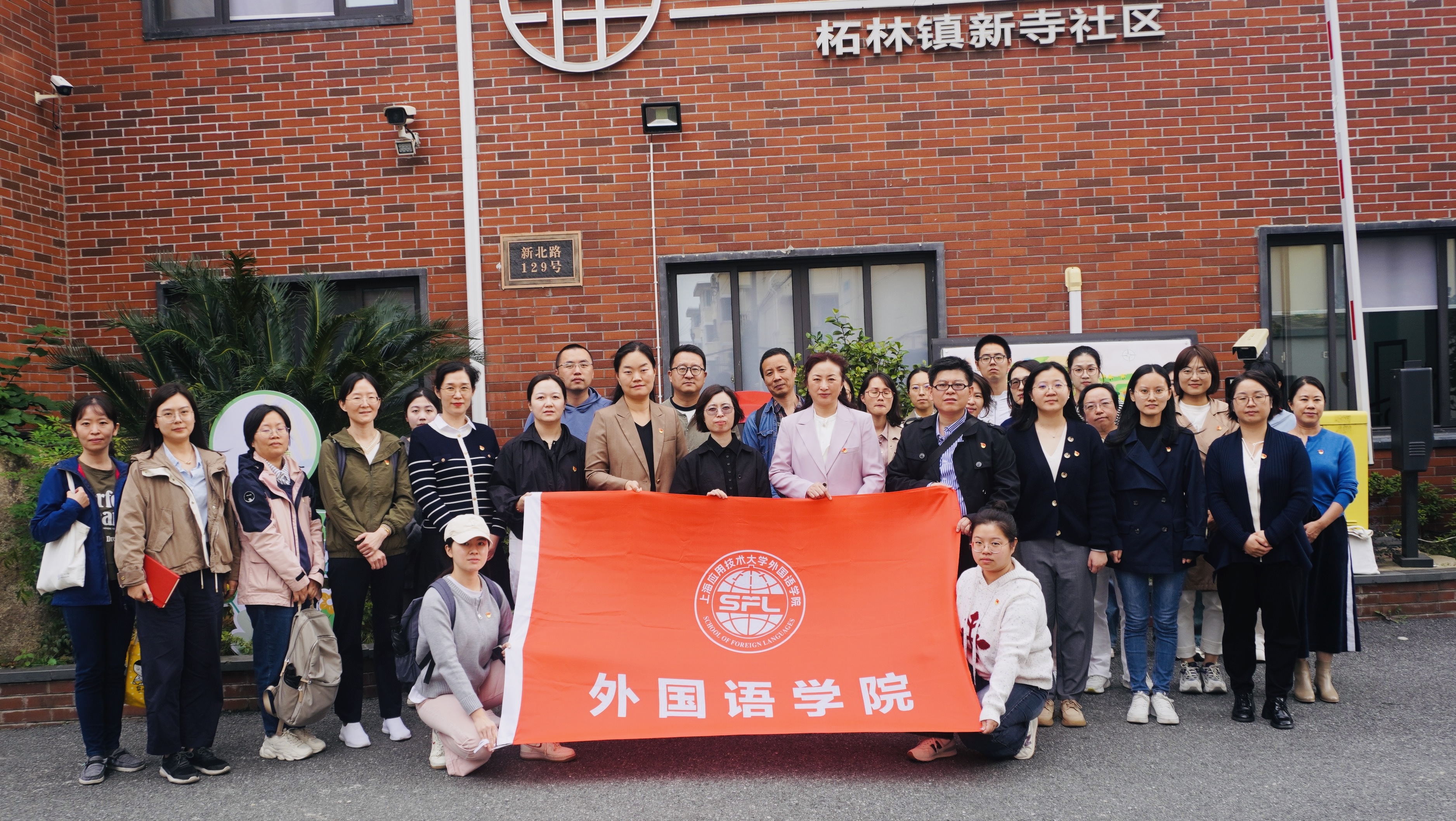 为进一步发挥党建引领作用,推动“镇校”深入合作,10月24日下午,外国语学院党委与柘林镇党委开展结对共建活动。学院党委书记杨雪、党委副书记、院长潘智丹、奉贤区柘林镇党委副书记罗兰萍、柘林镇党委委员方素琴、柘林镇党群服务中心支委、副主任高珏以及新寺村、新寺村居委党群相关负责人,外国语学院师生党员代表近40人参加活动。