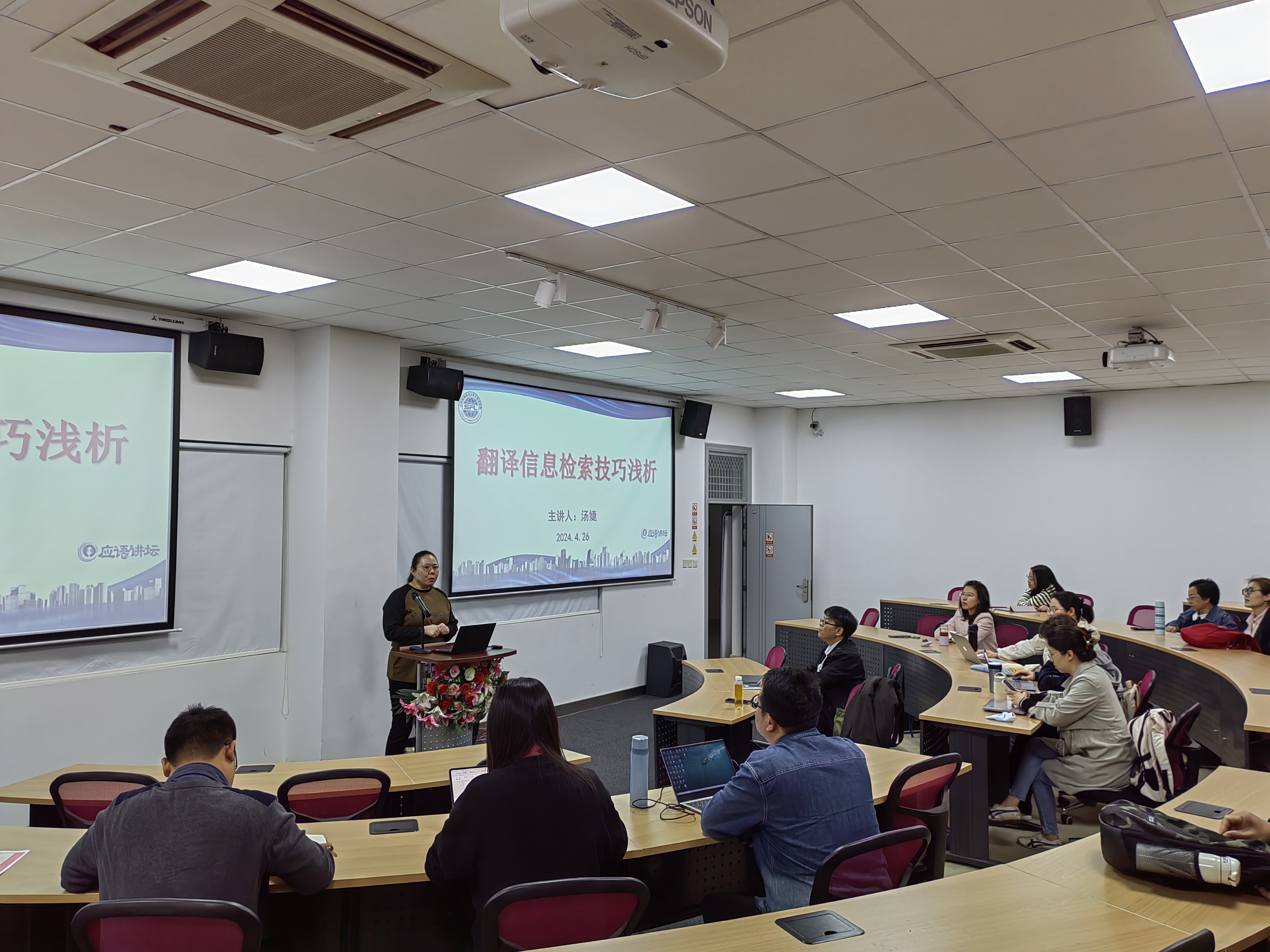 4月26日上午,外国语学院邀请中译语通信息科技(上海)有限公司翻译部资深翻译汤婕女士作了一场关于翻译中搜索技巧的专题报告,各系室主任、骨干教师以及部分学生踊跃参加讲座,交流AI赋能下“搜商”的多元应用场景。