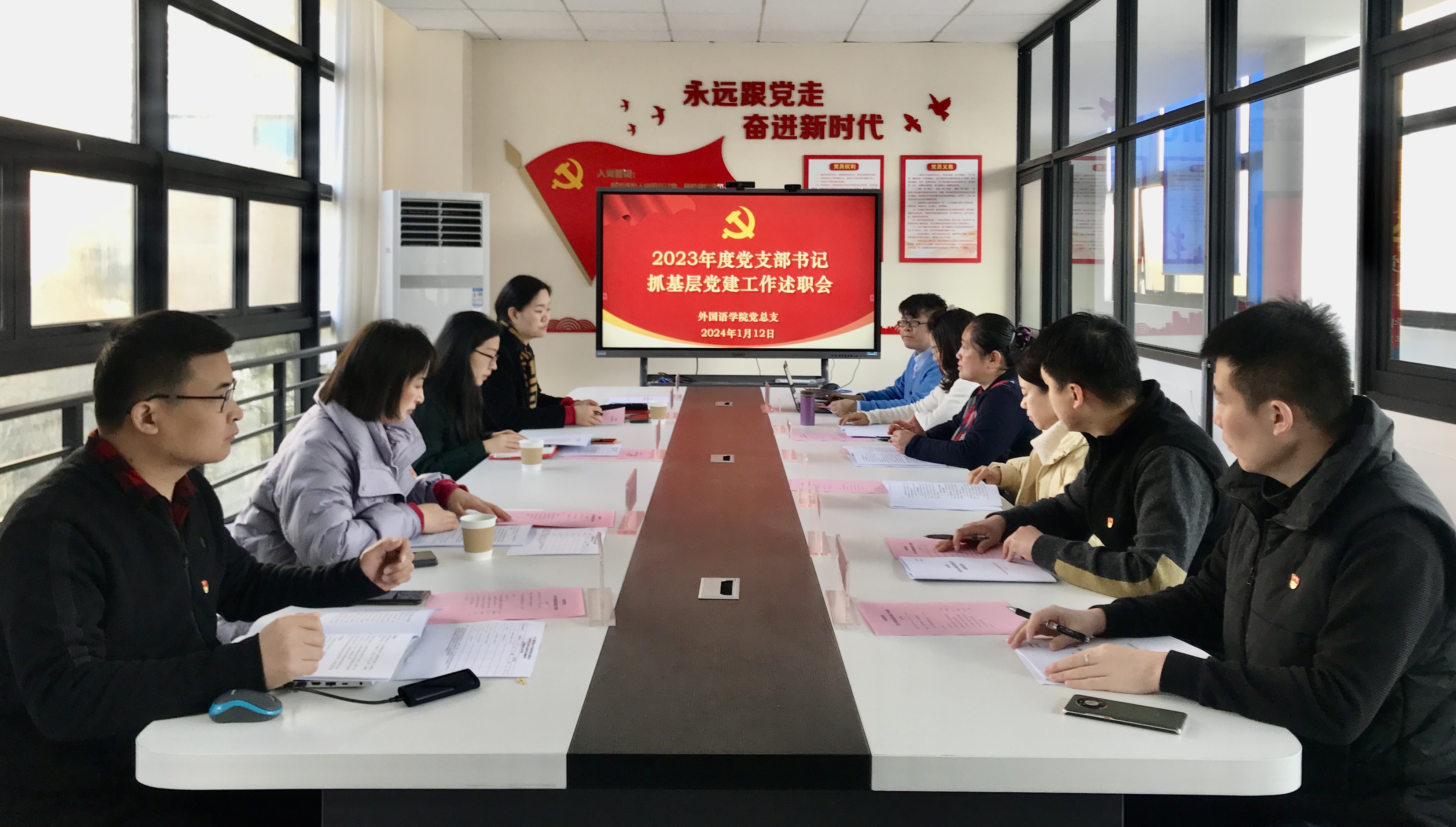 为深入学习贯彻习近平新时代中国特色社会主义思想和党的二十大精神,进一步提升基层党建工作质量水平,压紧压实基层党支部书记责任,推动学院基层党建工作创新发展,1月12日上午,外国语学院党总支在第五学科楼党员活动室召开2023年度党支部书记抓基层党建工作述职会。校党委组织部统战部副部长吴敏,外国语学院党总支书记杨雪,外国语学院院长潘智丹和总支委员出席本次述职会。学院4个教师党支部、1个教工党支部及1个学生党支部分别进行了现场述职。会议由学院党总支书记杨雪主持。