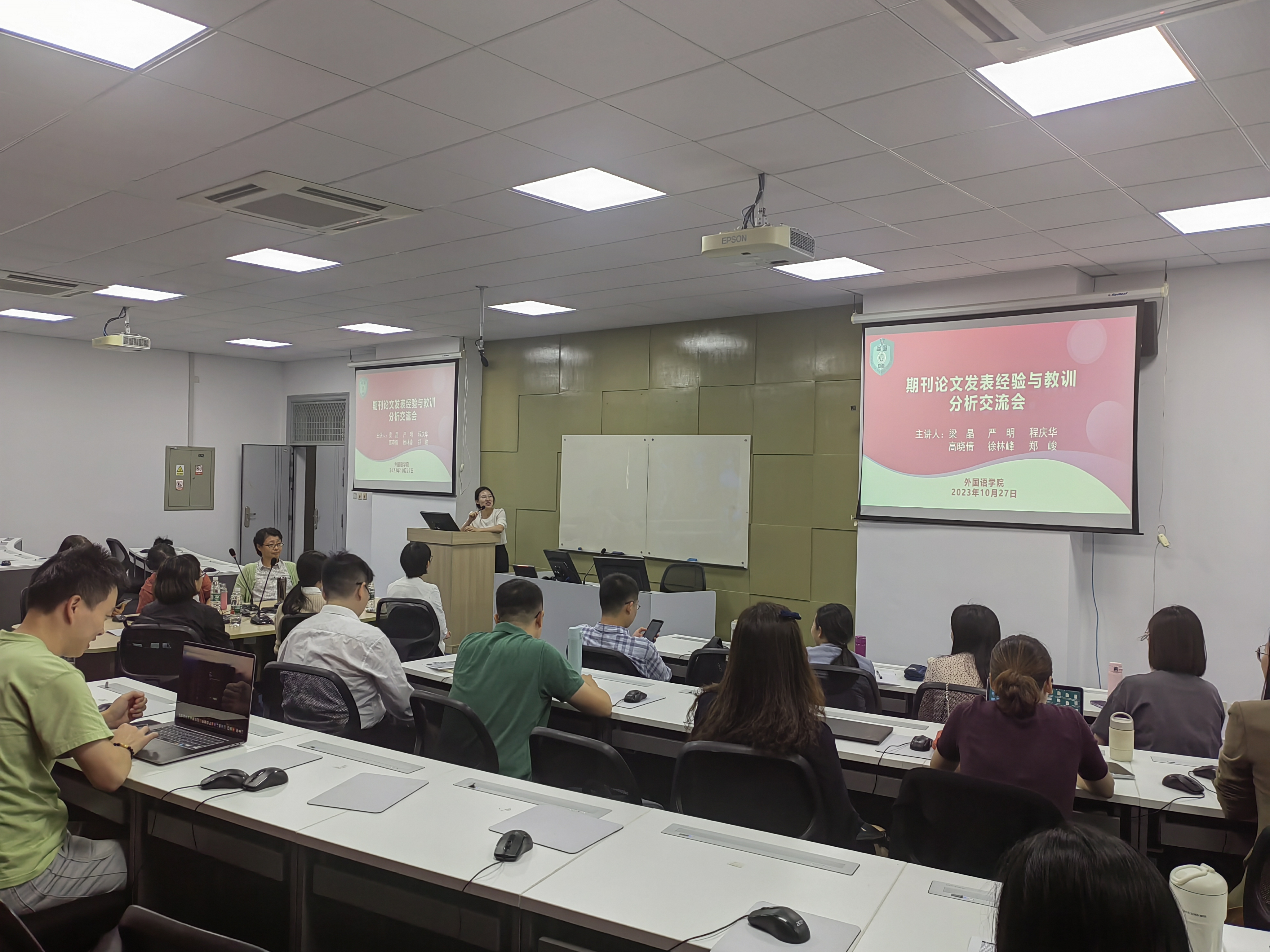 为了提升期刊论文中稿率,提升外语科研产出成果的见刊效率,2023年10月27日下午1点,外国语学院为打造应用外语特色品牌而精心策划的“应语讲坛”第四讲在五科B309室开讲。本次讲座的主题围绕期刊论文发表经验与教训,六位主讲人是期刊论文发表经验丰富的梁晶、严明、程庆华、高晓倩、徐林峰和郑峻老师,全部来自学术文章撰写团队。讲座由翻译中心主任叶湘和学术文章撰写团队召集人徐琴琴共同主持,讲座形式为主讲人与听众与谈式对话,20多名老师踊跃参与交流与对谈。