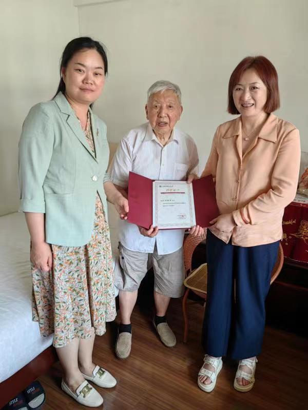 6月21日,外国语学院总支书记杨雪、院长潘智丹一行前往其住处看望并慰问了许黎生老师。一行与许老师交流了学校近年来的发展情况,对许老师长期来对学校的关心和关注表示感谢。同时,向许老师授予了图书捐赠证书。