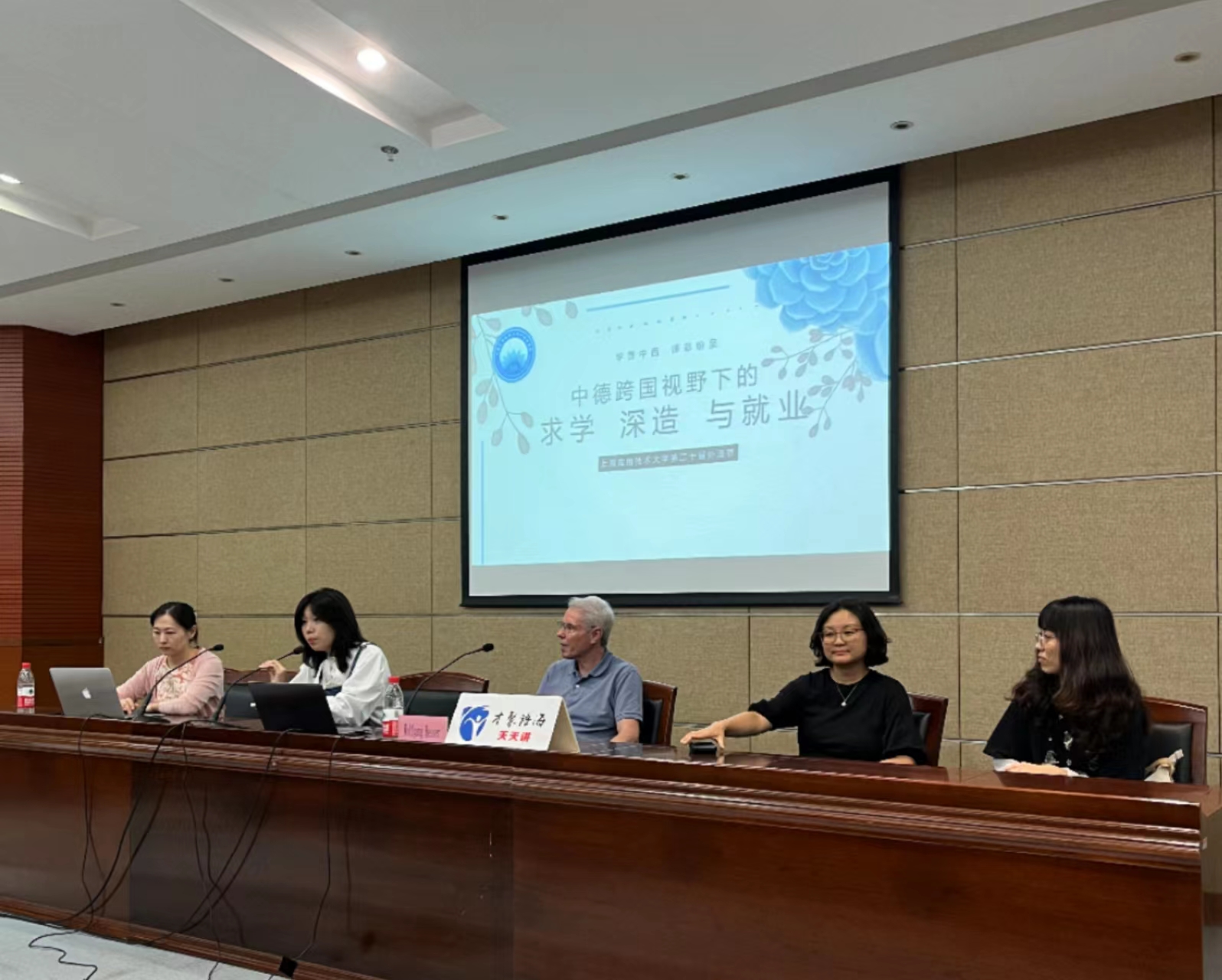 Hesser先生与我院德语系教师们举行座谈交流,就德语专业学生语言学习、就业方向、留学前景等话题展开热烈讨论,Hesser先生根据其数十年的中德经贸合作经验和对德国留学及劳动力市场的了解,对我院德语学生的学习和就业提出建设性的意见和建议。