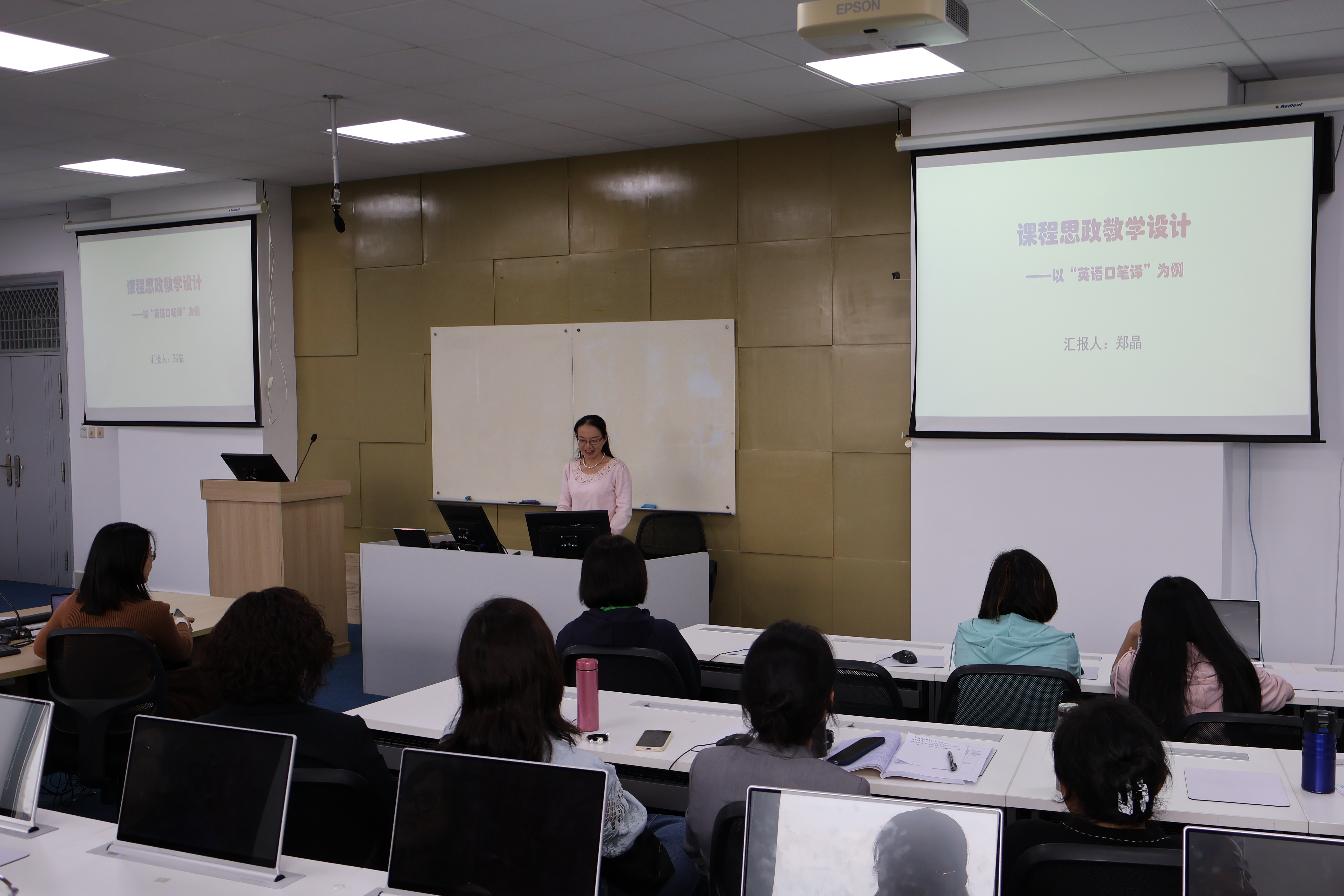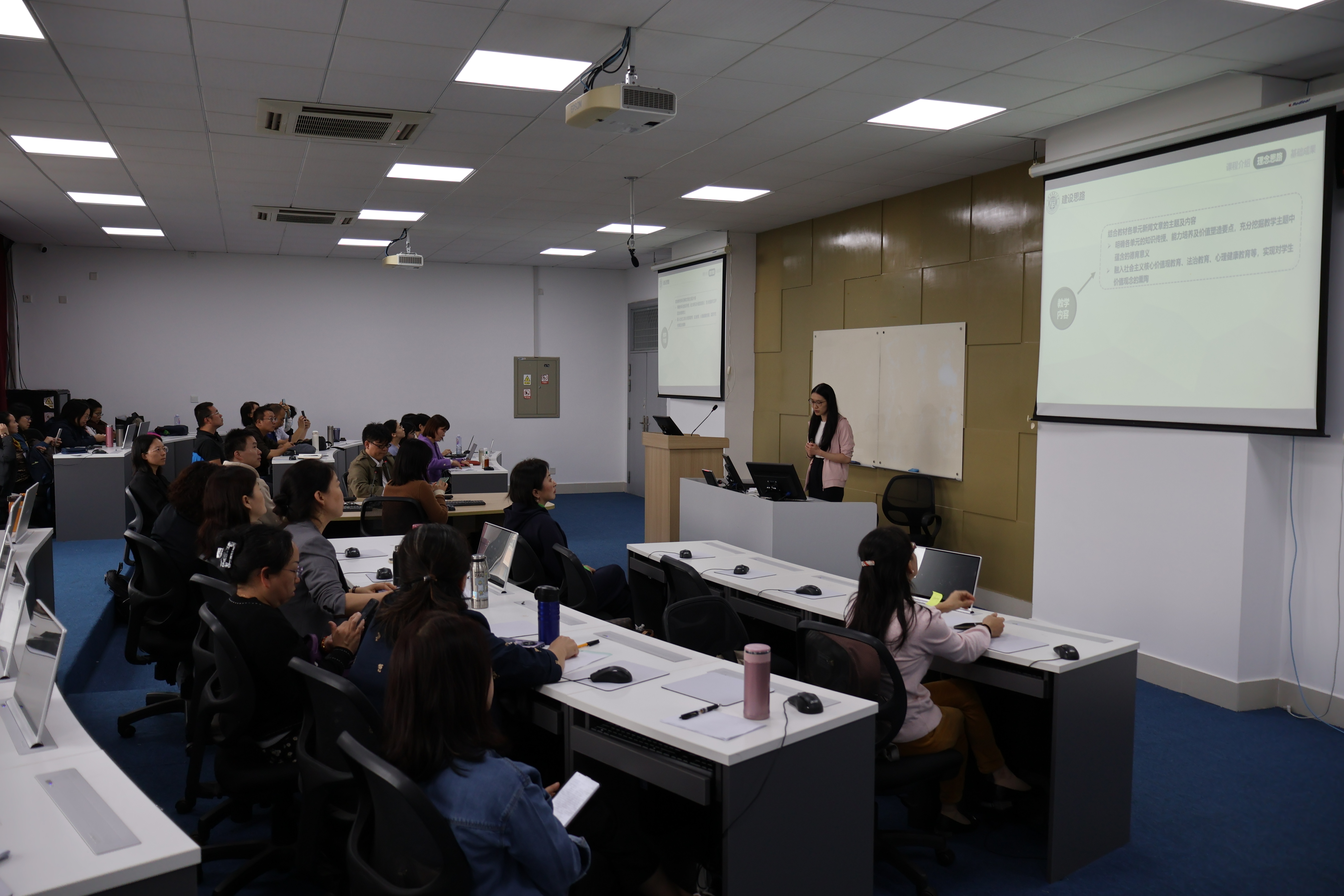 为了落实思政元素进外语课堂,提升以“三全育人”为导向的公共外语课程服务全校人才培养质量,2023年10月20日下午1点,外国语学院为打造应用外语特色品牌而精心策划的“应语讲坛”第二期在五科B309室开讲。本次讲座的主题围绕大学英语课程思政路径探索及案例分享,两位主讲人是徐晗和郑晶,她们分别是国家级、上海市级一流本科课程负责人。讲座由翻译中心主任叶湘和课程建设与研究团队召集人赵筱婧共同主持,会场座无虚席,近40名老师踊跃参与课程建设交流与互动。