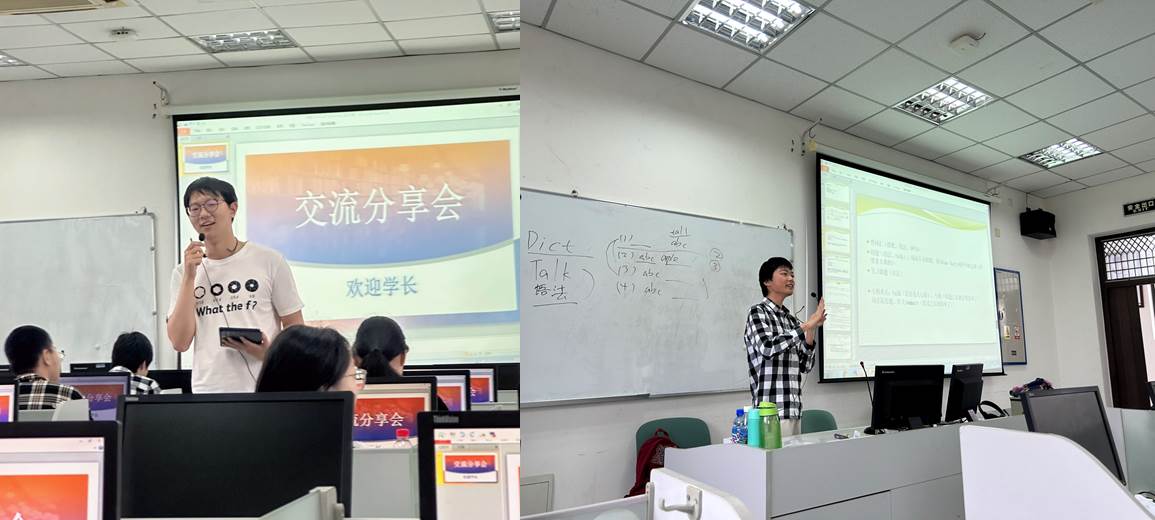 6月8日,外语学院“英语系专业学习经验交流分享会”在第三教学楼413成功举行。本次交流会邀请了21级的卞锡伦、张俊两位优秀学长为22级同学做了一场内容丰富、生动活泼的专业学习导学讲座。交流会内容涉及大一学生最为关注的专业四级备考、复习策略问题,各学科日常学习经验,以及同学们在学校生活中的交友心得、心理健康和思想政治方向问题。两位同学从自己的学习实践出发,讲座深入浅出,环环相扣,受到师生们的一致好评。