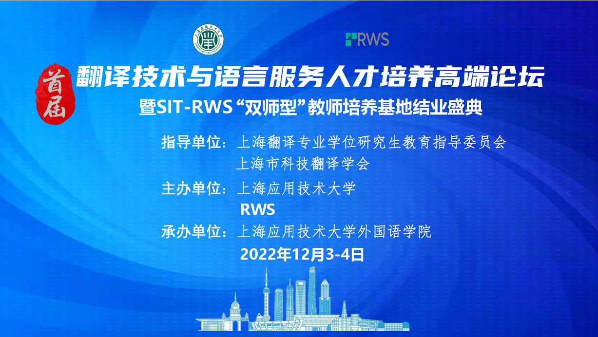 12月3日至4日,由上海应用技术大学和英国RWS公司主办的首届翻译技术与语言服务人才培养高端论坛暨SIT-RWS“双师型”教师培养基地结业仪式在线上举行。