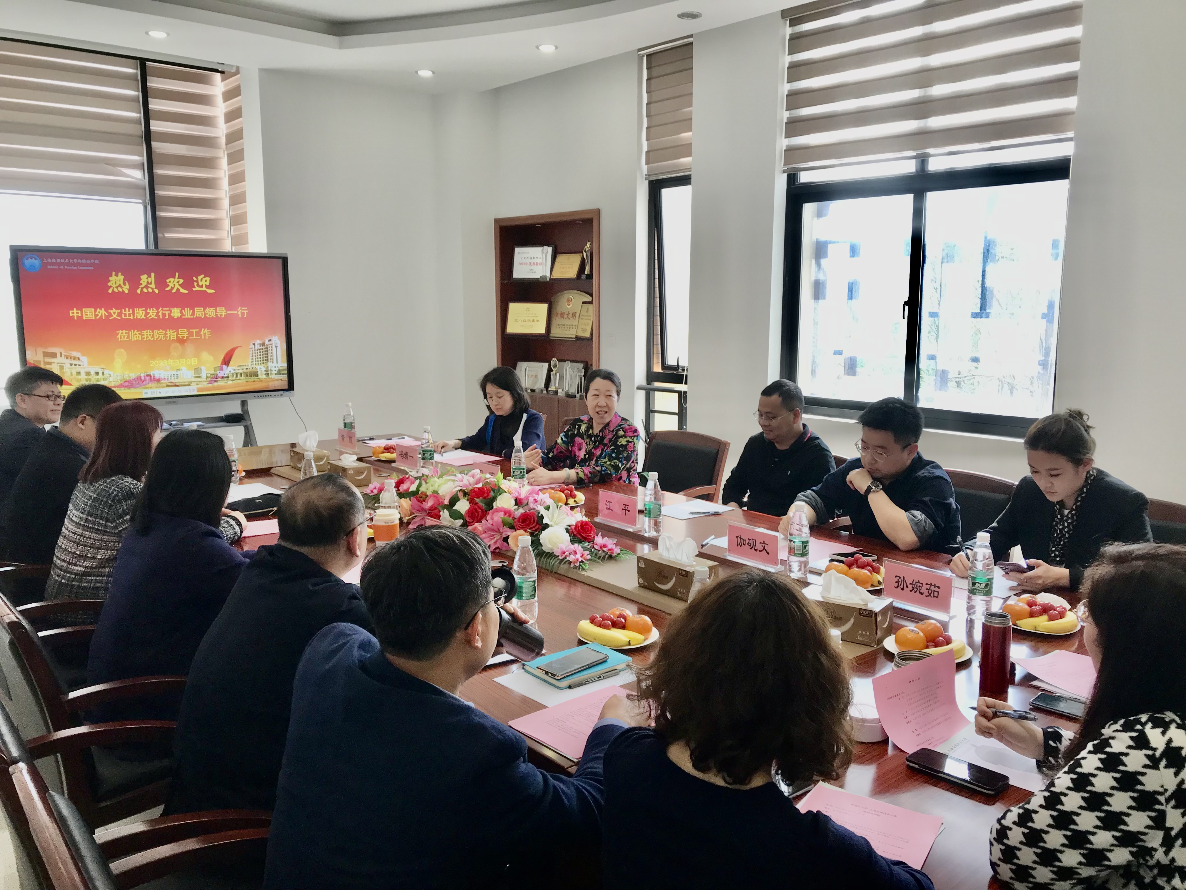 3月9日,中国外文出版发行事业局(简称“中国外文局”)机关党委常务副书记、全国翻译专业资格(水平)考试办公室主任、全国翻译专业学位研究生教育指导委员会副主任闵艺、中国外文局全国翻译专业资格(水平)考试CATTI项目管理中心主任江平一行莅临我院开展考察调研活动,院长潘智丹、副院长孙志青及各科室负责人陪同考察。