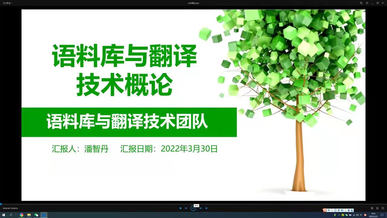 为了解决新型冠状病毒肺炎疫情带来的影响,持续在学院营造浓厚的科研氛围,提高学院翻译技术及语料库的应用能力, 3月30日,学院语料库和翻译技术团队举行线上交流研讨会,院长潘智丹主讲。
