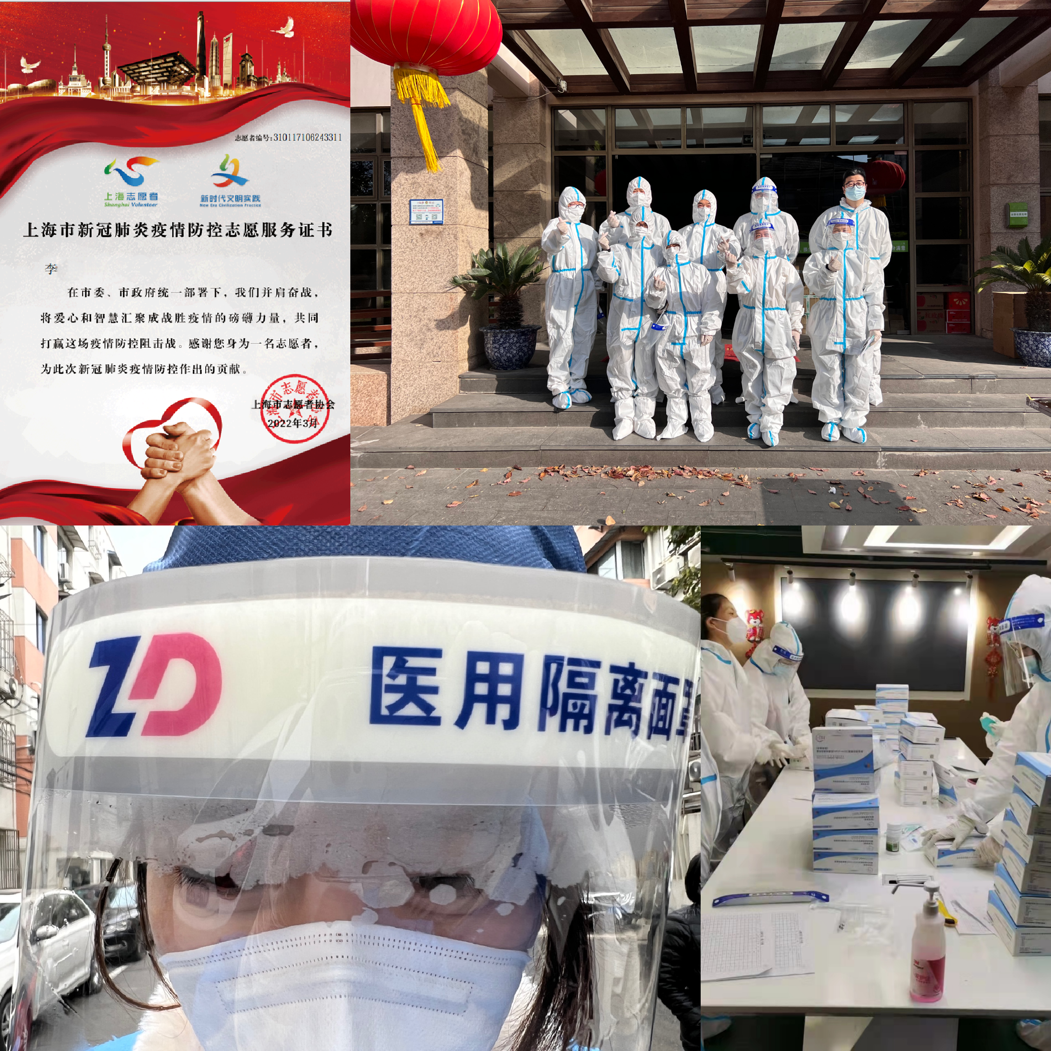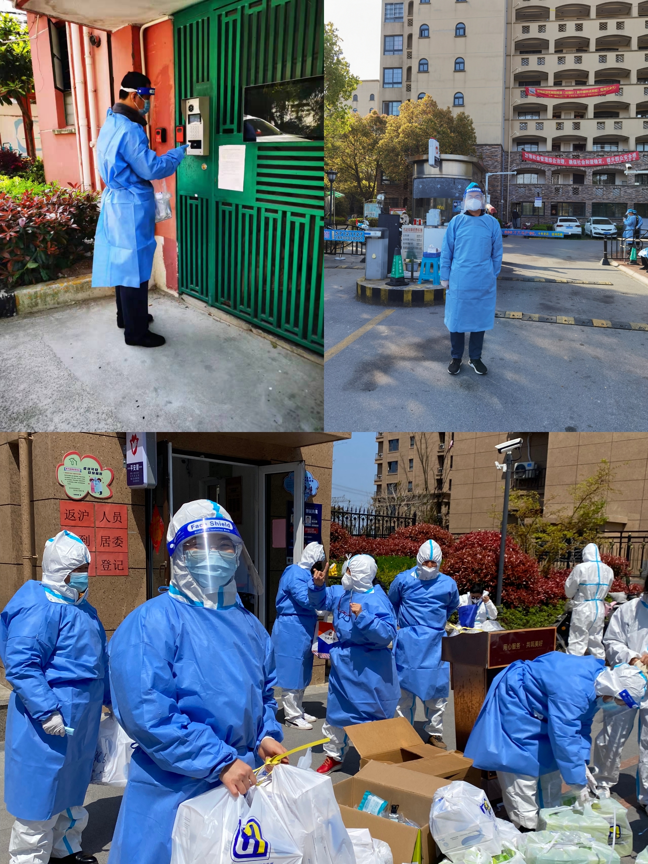 志愿者们在防控工作中密切配合并坚决服从居委安排,积极参与核酸采样组织协调、抗原材料上门发放、政府或捐赠物资发放、生活物品筹集团购、独居老人和外籍人士帮扶、生活垃圾转运等工作,不怕苦不怕累不怕脏,体现了“外语人”的责任与担当。公共外语教研一部党支部书记刘稳良老师在社区协助居委开展疫情防控工作,体会良多,他说:“在志愿者们的共同努力下,看到居民生活正常运转起来,我由衷地高兴,再累也觉得值,我看到了党的力量,做到了为人民服务”。院办90后何莲老师第一次参加志愿者活动,感受颇深,她说道,“做志愿服务时,我穿着密不透风的防护服每次连续跑三四个小时,又闷又热,汗水湿透了所有的衣服,尽管有虚脱的感觉,但看到其他志愿者仍是忘我地忙碌,我被感染到了,咬紧牙关坚持下去,当看到小区里每户核酸、抗原都是阴性时,也不觉得累了。”家住南翔镇的学生党员金心嫣作为防疫志愿者,无论到昼夜、晴雨,她在7900余人居住的社区随叫随到,或奔波或坚守,她说:“口罩勒得脸很疼,雨水和雾气有时会附上面罩一片模糊,但我必须认真履行我的职责,维持居民排队秩序,保障采样工作顺利开展。