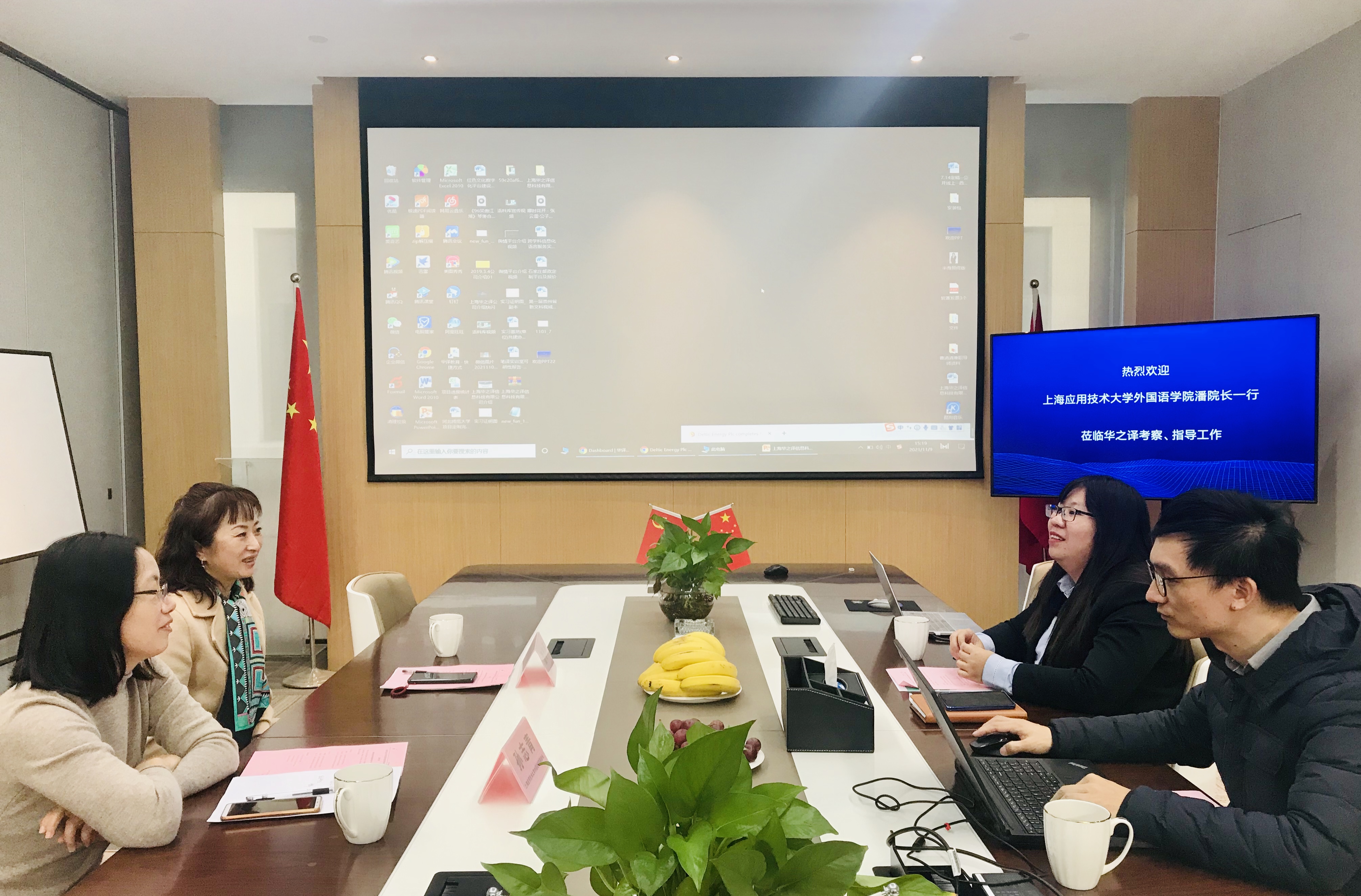 潘志丹介绍了外国语学院人才培养及学科建设的情况,以及与企业合作的需求。孙志青介绍了学院实践课程设置和实习基地建设的情况。最后双方并就实习实践基地建设、双师型师资培养、翻译研究及翻译硕士点申报与建设等方面的合作切合点展开了深入交流。
