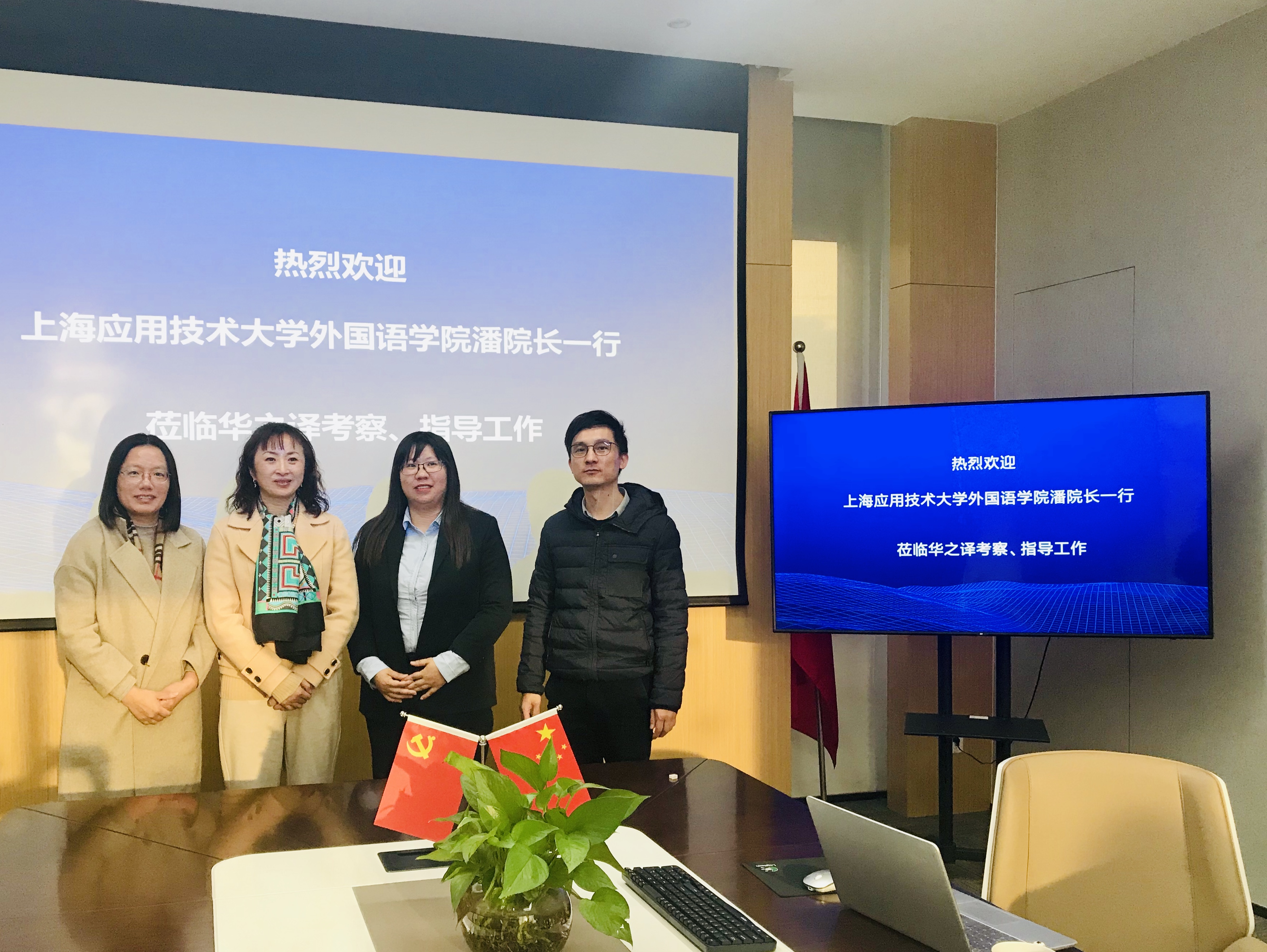 11月10日外国语学院院长潘智丹、副院长孙志青一行赴华之译公司进行调研交流,受到华之译公司总经理曹清清、技术总监沈俊豪的热情接待,并参观了公司的展示厅、办公和实习区域。