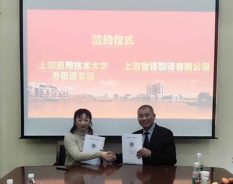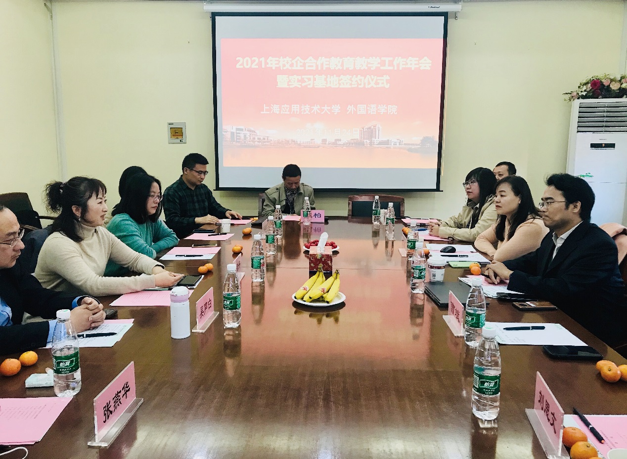 11月24日,外国语学院在徐汇校区举办了2021年校企合作教育教学年会暨实习基地签约仪式。上海世语翻译有限公司、上海华之译信息科技有限公司、上海策马翻译有限公司、中译语通信息科技(上海)有限公司、上海佑译信息科技有限公司5家公司代表应邀出席会议,外国语学院院长潘智丹、副院长孙志青和各系部主任参加会议。副院长孙志青主持会议。