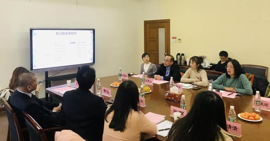 企业负责人介绍了企业的情况,并围绕如何在校企合作的实践实训平台、语言翻译竞赛和实践项目、语料库的建设、课题申报、实习实践创新模式、职业规划等方面加强与学校合作,展开了热烈讨论与分享发言。此外,企业负责人表示愿意为师生们提供在线翻译实践平台,以提高师生从事翻译研究与实践的效率。对学院每年提供的进博会、上海电影节等活动的翻译支援者给予了高度评价,表扬学生在翻译实践项目中配合度和完成度,希望今后加强合作。