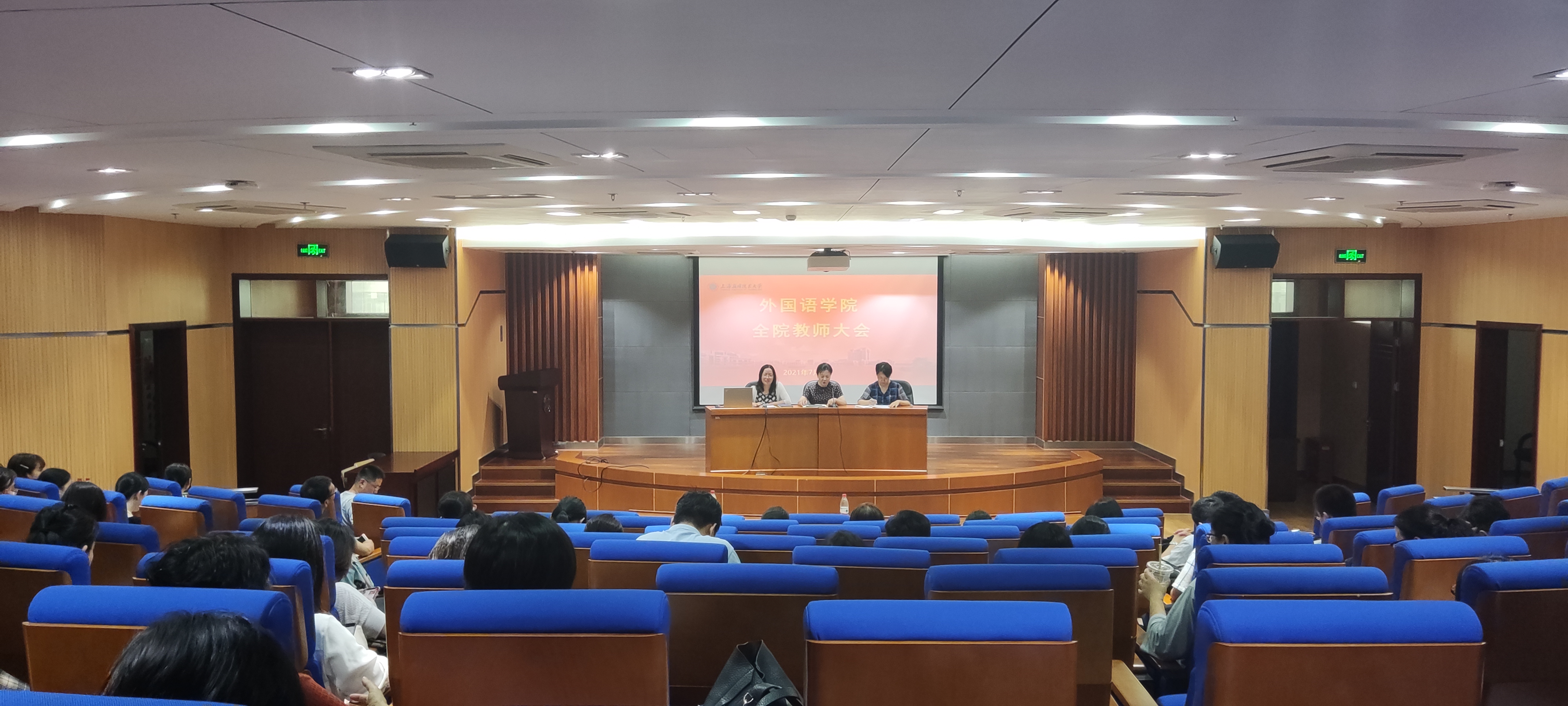 7月7日下午,外国语学院在第六学科楼B210报告厅召开全院教职工大会,学院党总支书记李晓晶、副书记副院长金丽华、副院长孙志青出席,分别就自己分管工作进行了总结。