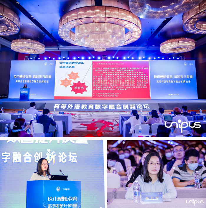 孙志青向全国高校的外语教学同行介绍了信息技术融入我校大学英语教学改革的经验与成果。报告梳理了教育部发布的一系列关于信息技术融入教育教学的文件,明确智慧教学与智能测评的发展是大学英语信息化教学改革的必经之路;报告回顾了在学校的大力支持下,我校大学英语教学信息化改革的历程,以及大学英语教学依托智慧教学和智能测评平台在疫情期间的创新应变、在疫情稳定后的常态化应用,促进大学英语教学的科学评价的情况;报告最后展示了近几年我校大学英语教学改革所取得的成效,尤其是线上线下混合式教学改革的成果。报告反响强烈,我校大学英语教学的扎实改革和显著效果得到了与会专家、同行的赞许,报告结束后已有几所学校表达了参观学习的意向。