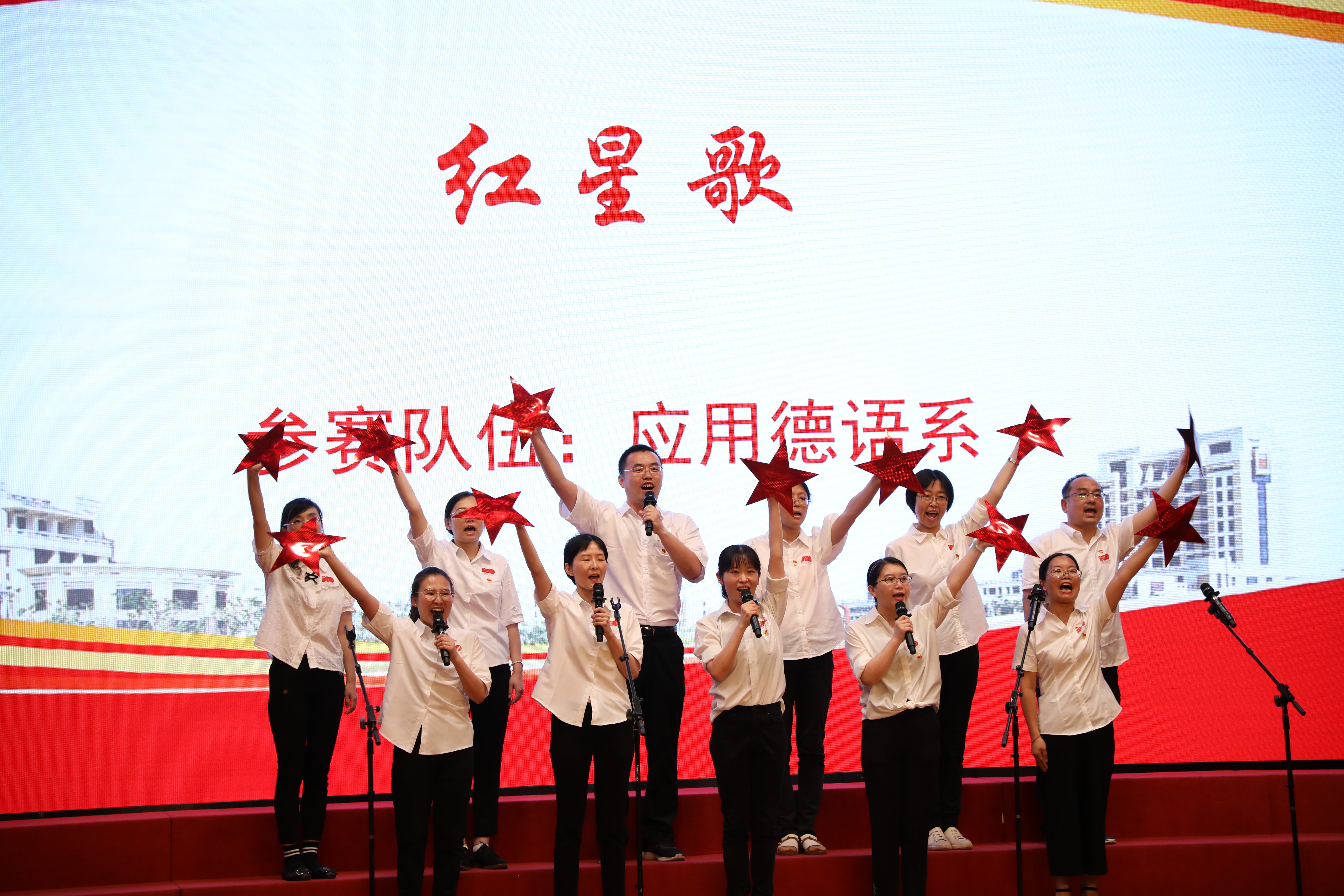 随后,16支师生参赛队伍依次登台表演,用饱含深情的歌声献礼共产党、用音乐向中国共产党致以最诚挚的祝福。合唱比赛中还融入朗诵、舞蹈等多种艺术形式,《党啊,亲爱的妈妈》、《没有共产党就没有新中国》、《南泥湾》、《中国,中国,鲜红的太阳永不落》……一声声雄浑深情的红色呐喊,一曲曲斗志昂扬的红色歌曲,一段段荡气回肠的红色音乐,获得现场观众的阵阵掌声。最终,应用德语系等3支参赛队荣获一等奖,2018级英语一班等3支参赛队获得二等奖,2020级德语一班等5支参赛队获得三等奖。