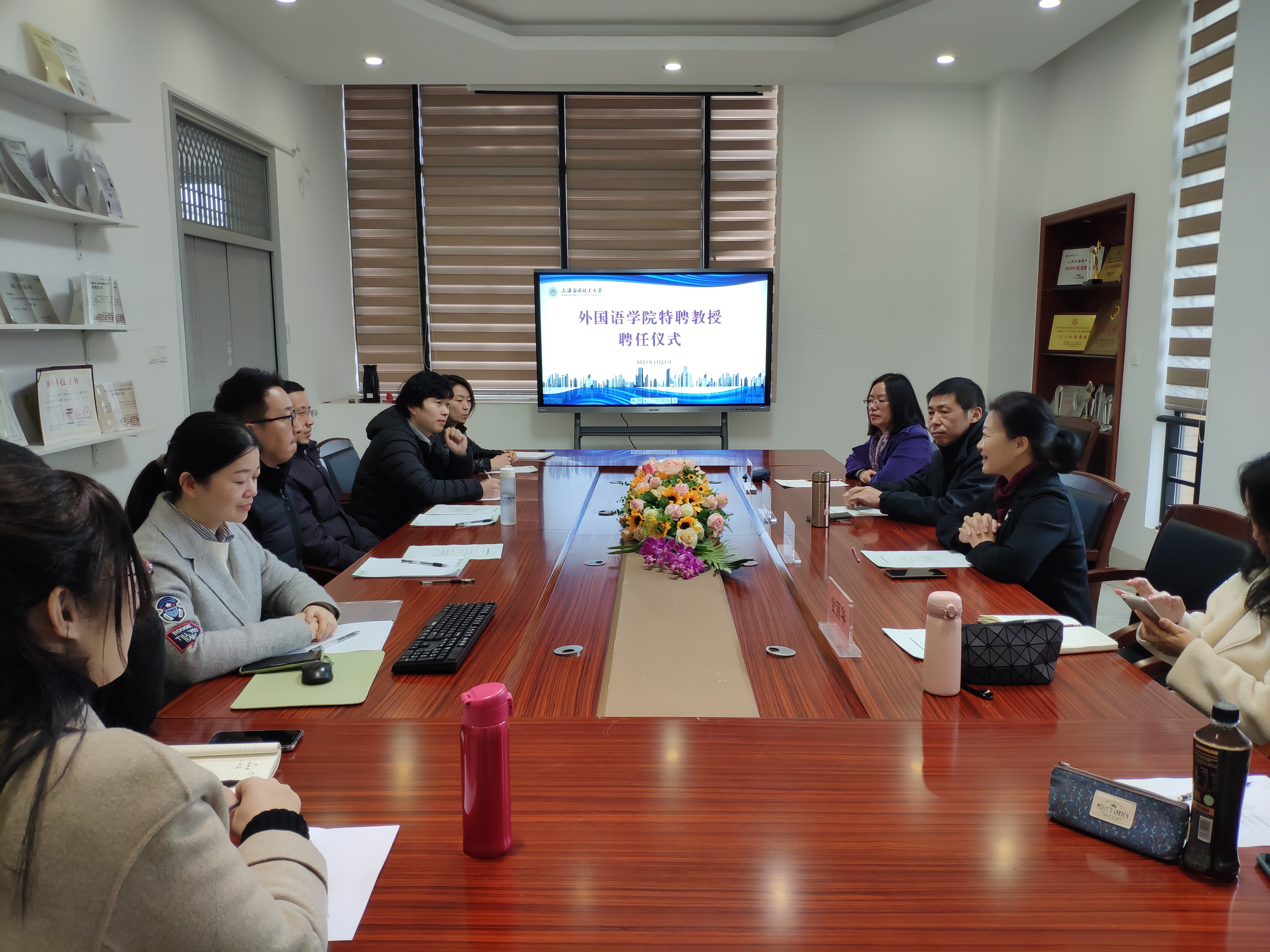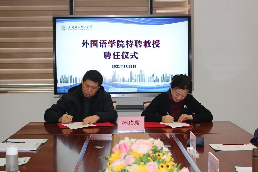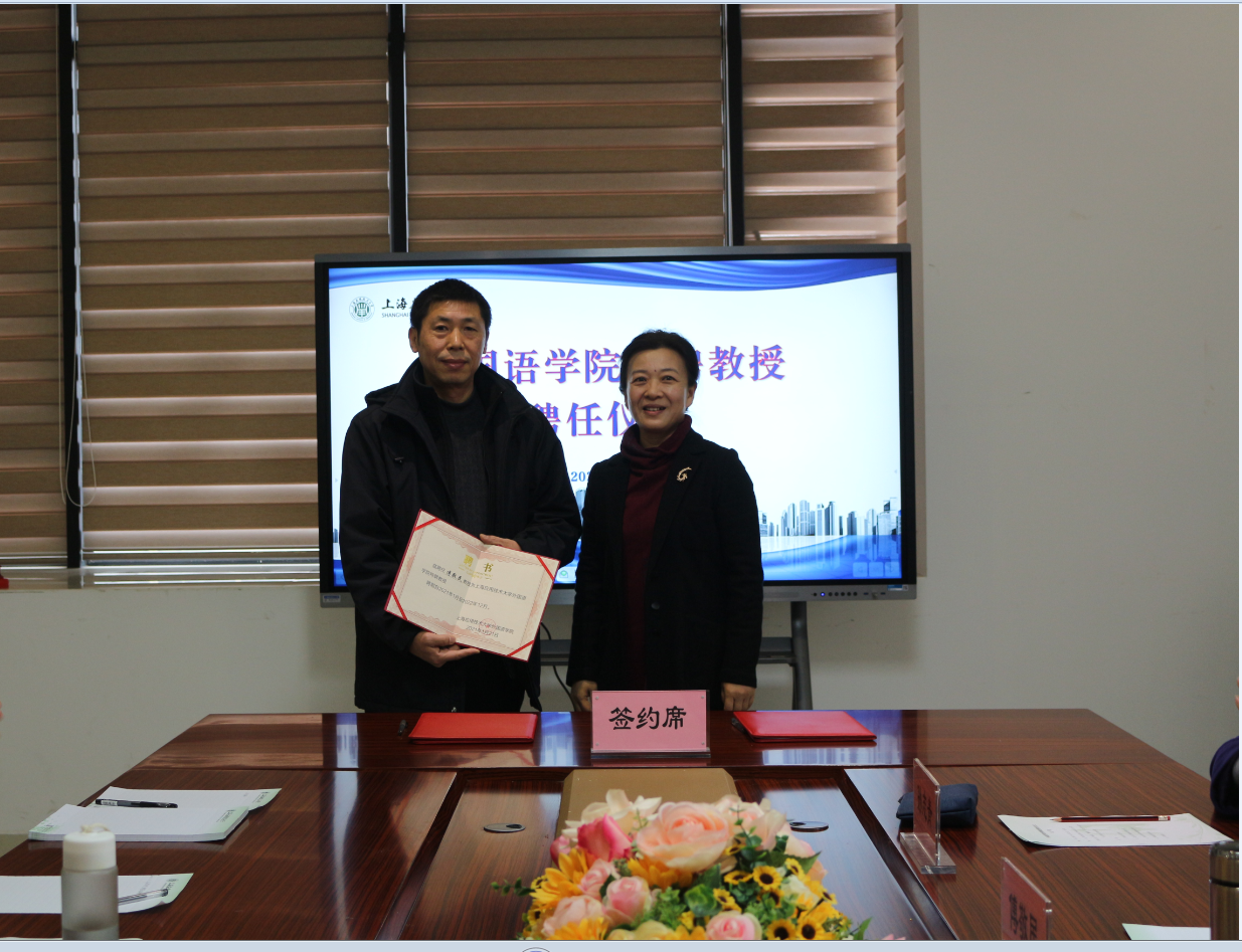 1月21日上午,外国语学院聘请上海大学傅敬民教授为特聘教授的聘任仪式在第五学科楼B213会议室举行。学院党总支书记李晓晶,副书记、副院长金丽华,副院长孙志青,各系部主任,翻译中心教师等出席仪式。孙志青主持聘任仪式。