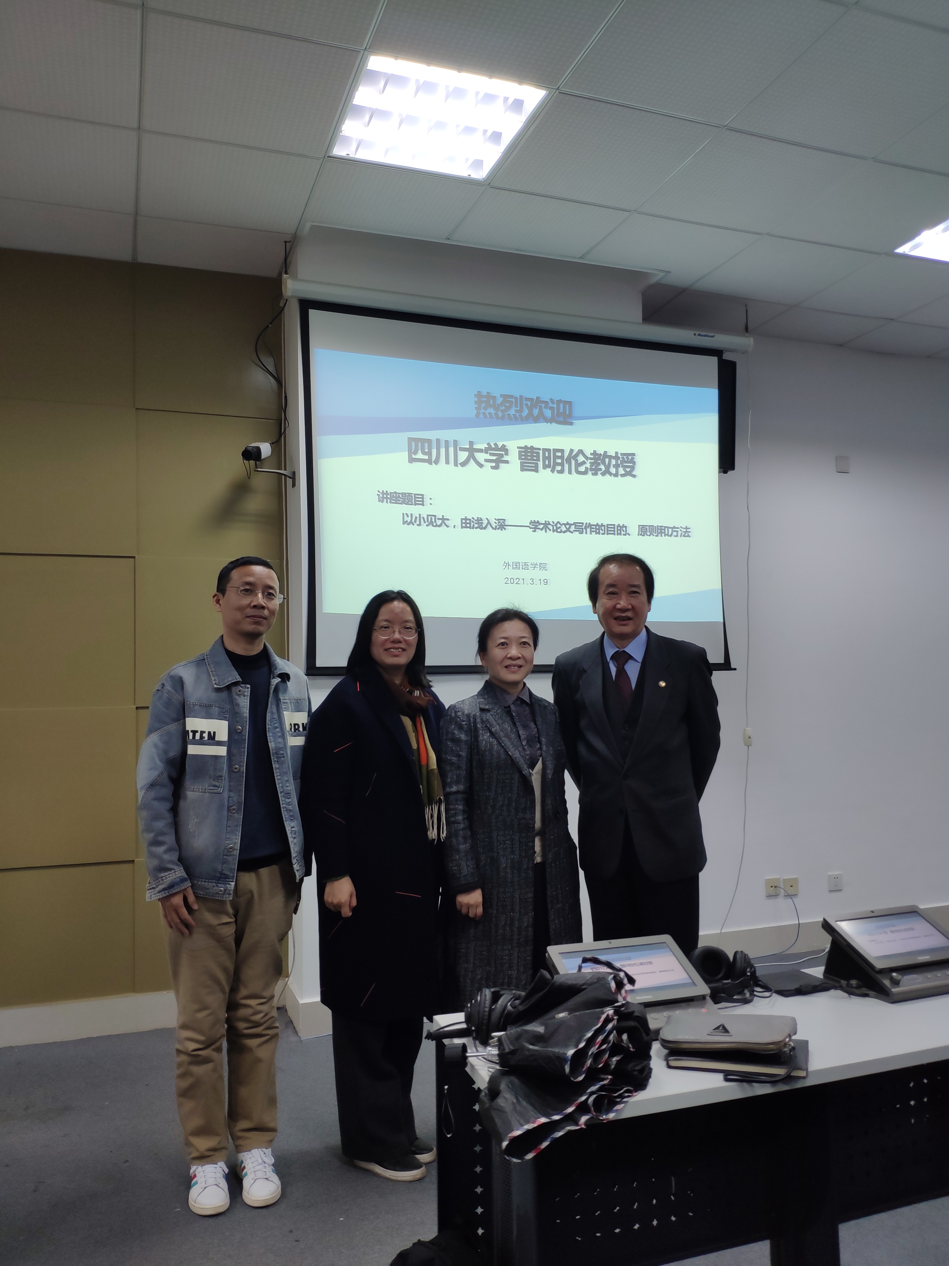 3月19日上午,四川大学曹明伦教授应我院邀请,为我院教师作了题为“以小见大,由浅入深——学术论文写作的目的、原则和方法”的专题讲座。党总支书记李晓晶主持并致欢迎词,学院相关教师到场聆听。