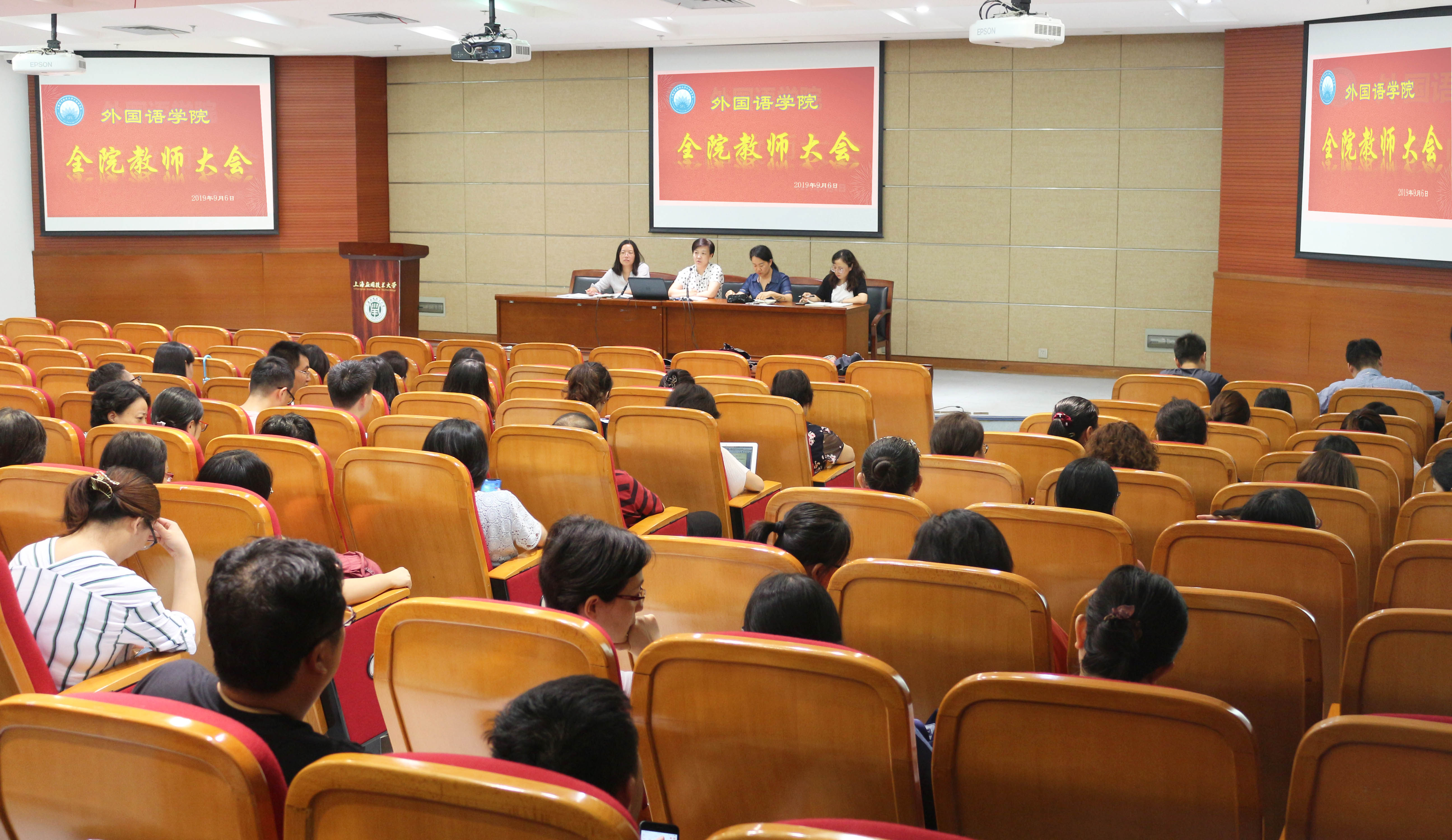 会上,李晓晶首先向大家介绍了学院新引进的三位专任教师,并传达了新学期学校中层干部会议的主要精神。她引用学校发展面临“标兵渐远,追兵逼近”的问题,强调外国语学院发展必须要将自身融入到学校高水平应用型大学的建设中去,以学校特色优势学科为引领,促发展,上水平。同时,李晓晶还向老师们布置了新学期的教育安保维稳工作,特别强调了政治稳定,要常抓不懈,增强安全意识,时刻防患于未然。另一方面,暑期最后一天,学院召开了年度考核对标推进会暨新聘期方案研讨会,制定了围绕“对标补缺抓内涵,扶忧助强促发展”的工作总方针。李晓晶指出,新聘期考核方案的制定要兼顾学校的考核和学院自身的发展,同时强调,全院要大力主抓本科教学工作,要求广大老师在新的学期里,高度重视教学工作,坚持以人为本,严格按照教学规范开展各项教学活动。