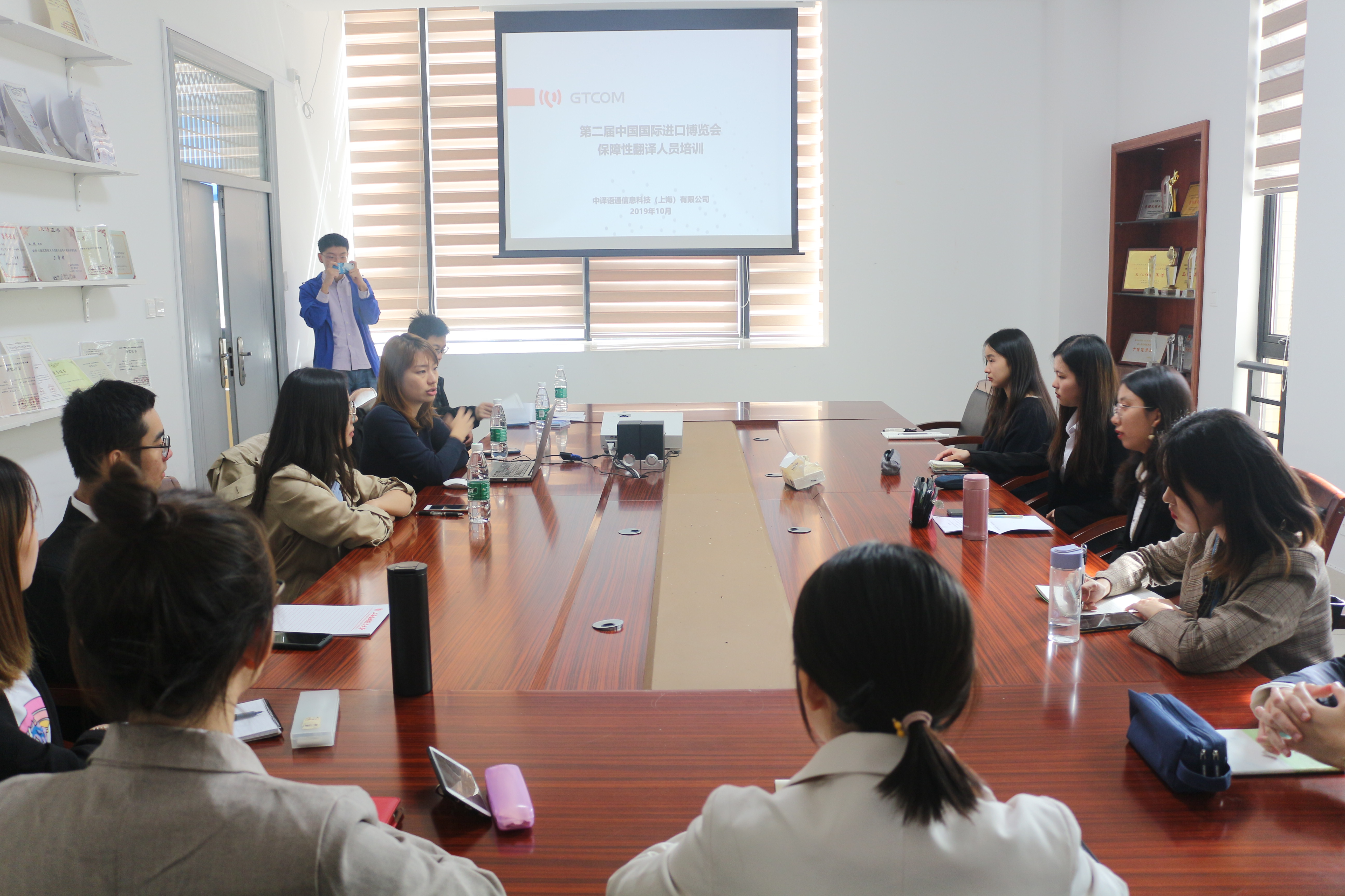 第二届中国国际进口博览会将于11月5日至10日在上海国家会展中心开幕,中译语通信息科技(上海)有限公司作为进博会语言服务商,在我院英语和德语专业招募了9名16级学生做大会保障性翻译人员。10月29日,中译语通刘思文副总经理一行4人来校为志愿者进行了培训及考核,副院长于静接待了企业专家并组织了培训工作。