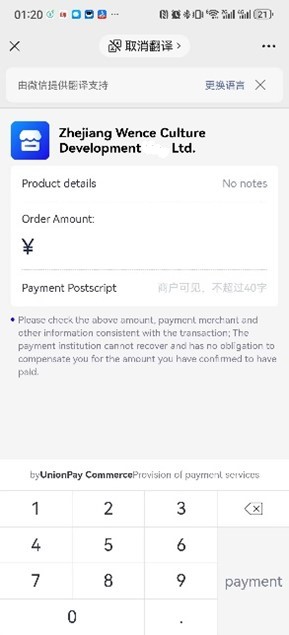 Beneficiary: Zhejiang Wence Culture Development Ltd.