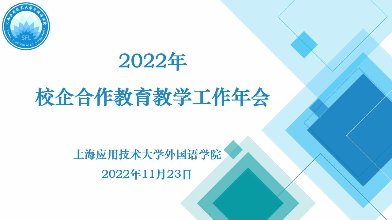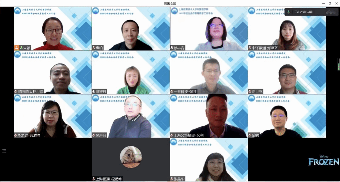 On November 23, the School of Foreign Languages held the 2022 annual conference on school enterprise cooperative education and teaching through Tencent Meeting. Representatives of six companies, including Shanghai Huazhiyi Information Technology Co., Ltd., Shanghai Yingtong Translation Service Co.,Ltd, Shanghai Yiguoyimin Translation Service Co., Ltd., Zhongyiyutong Information Technology (Shanghai) Co., Ltd., Shanghai Wence Translation Co., Ltd. and Shanghai Yizhe Information Technology Co., Ltd., were invited to attend the meeting. Pan Zhidan, the dean of SFL, Sun Zhiqing, the associate dean, and the directors of various departments attended the meeting. Sun presided over the conference.